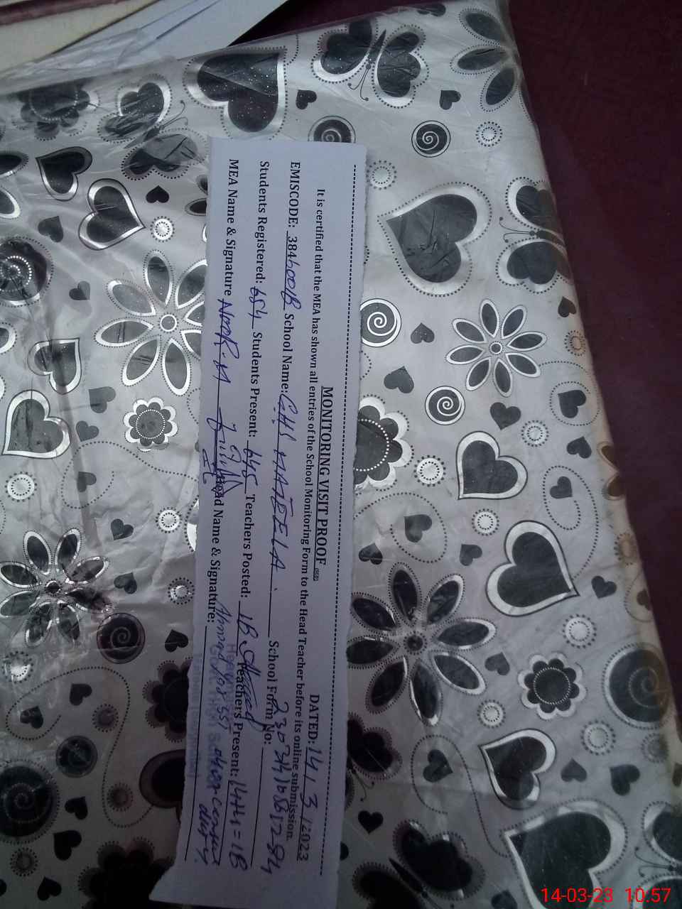 | Certified that this School was Inspected by the Undersigned MEA/DMO Today and the Information Stated Above is as Per Record. | |||||