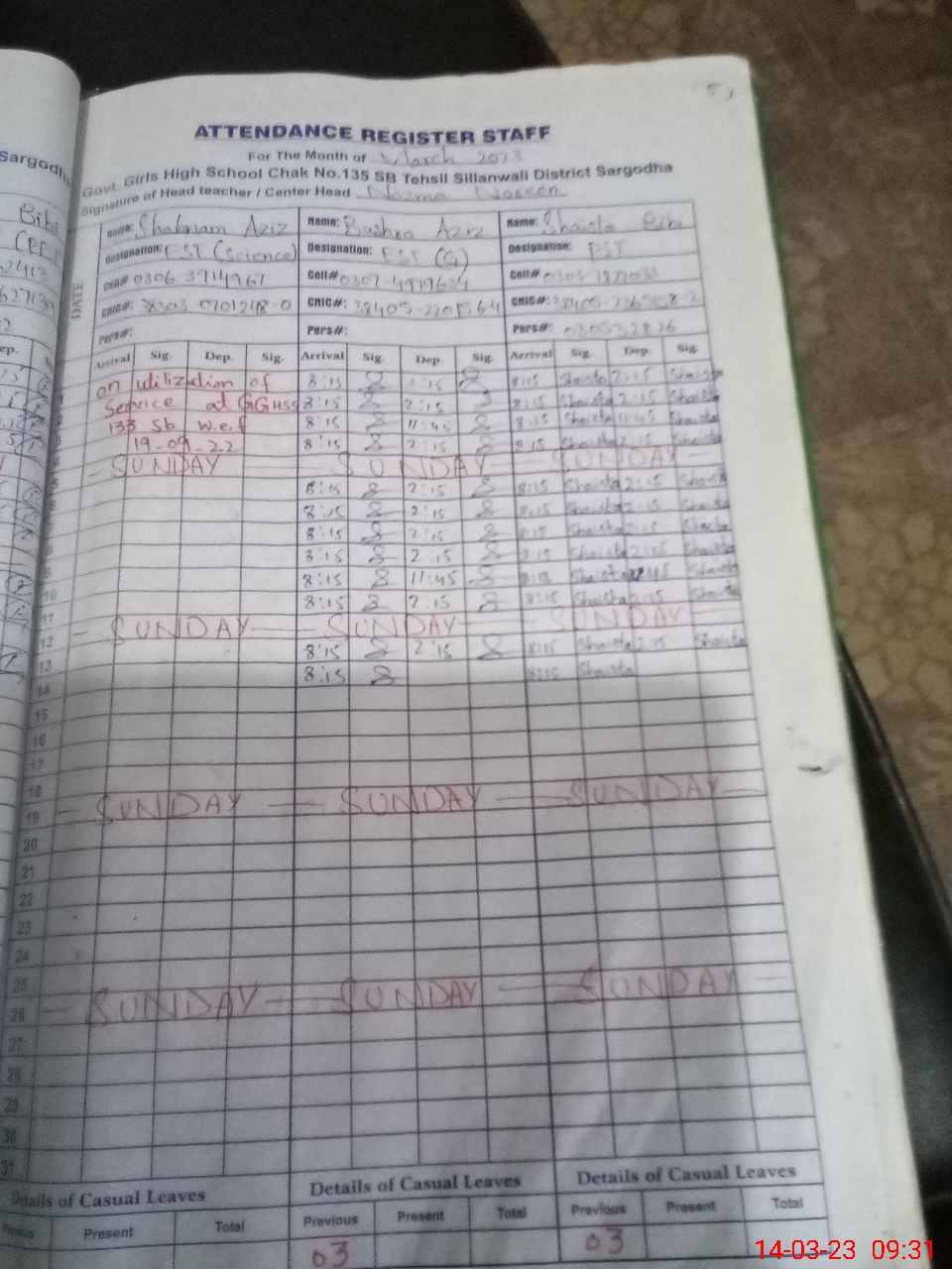 | Remarks (Use Separate Page if Required): EST shabnam Aziz posted in this school but her name is not in tablet She is permaming her duty in GGHSS chak no 133sb still 19 09 2022 | |||||