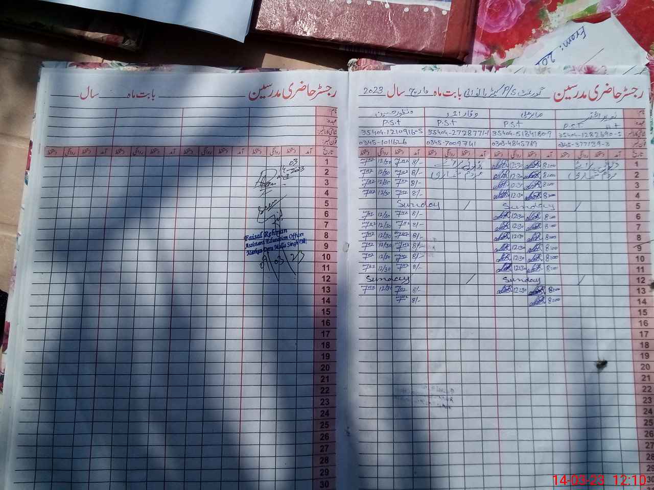 | Name: NA**** AK**** Designation: (School Headmaster's/Headmistress's) PST Phone/Cell Number: 03**** |
