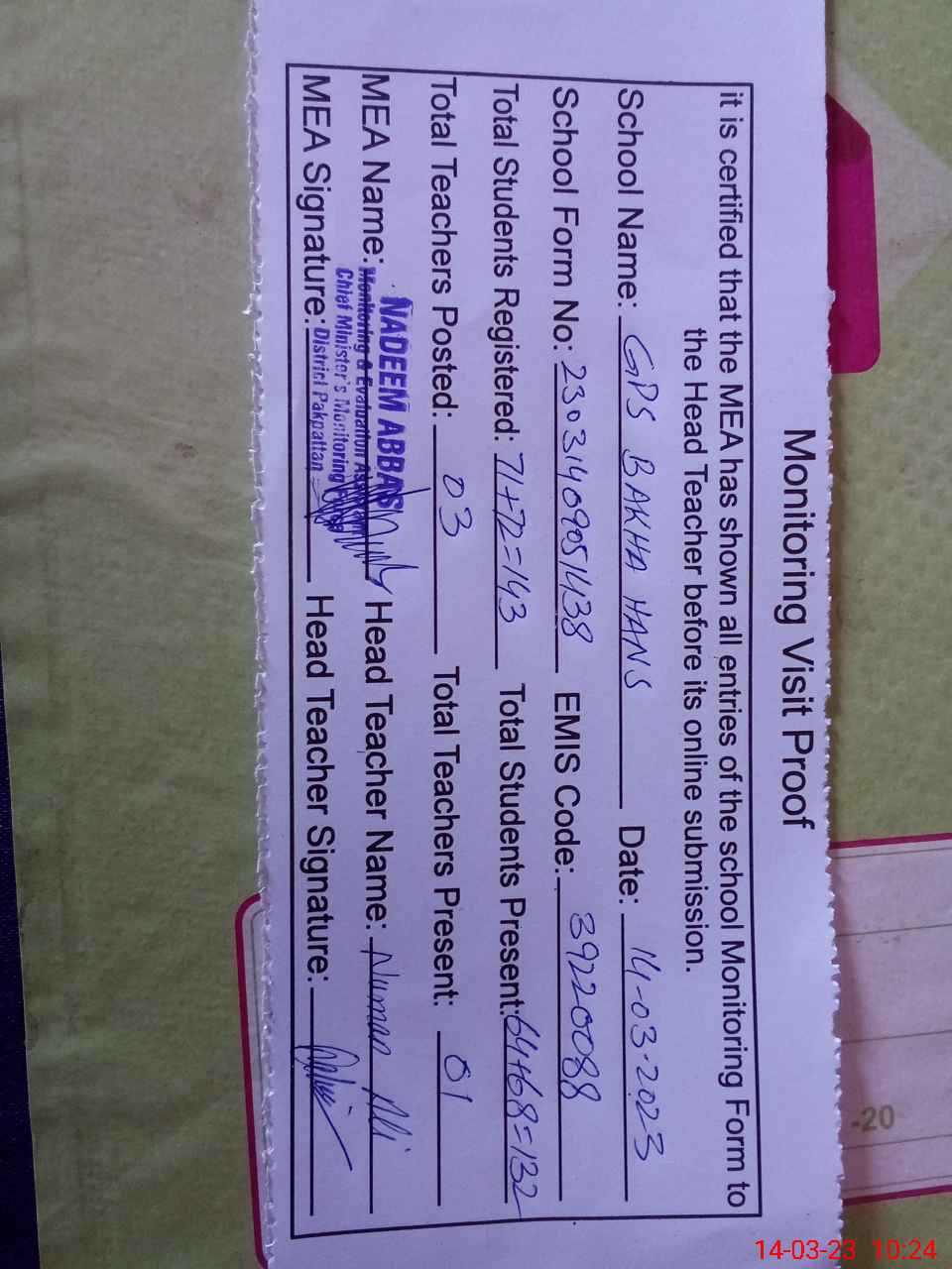 | EMIS Code: 39220088 | Name of School: GPS BAKHA HANS | |||