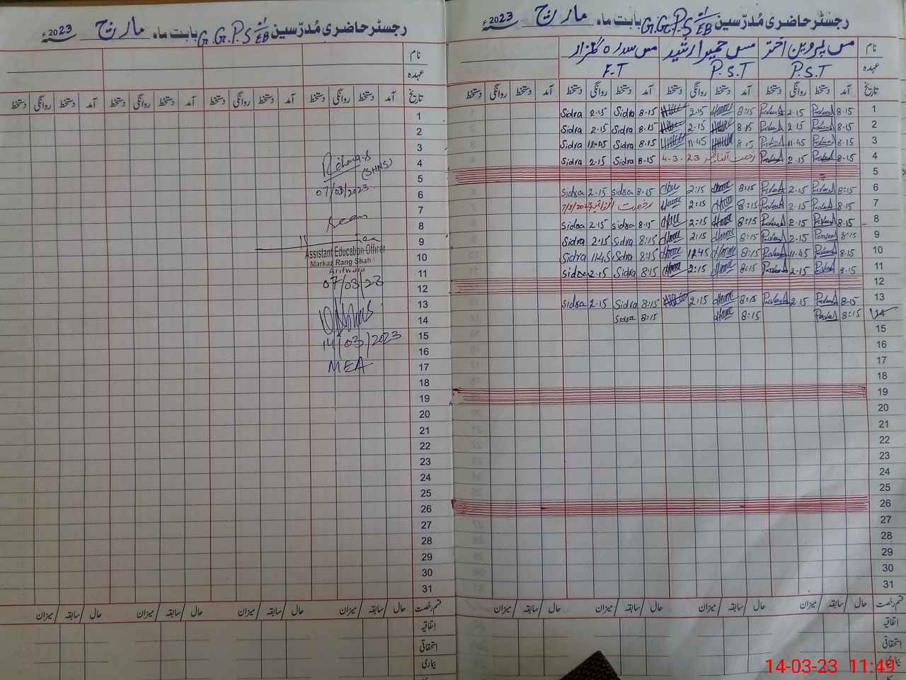 | Name: Hu**** Ra**** Designation: (School Headmaster's/Headmistress's) PST Phone/Cell Number: 03**** |