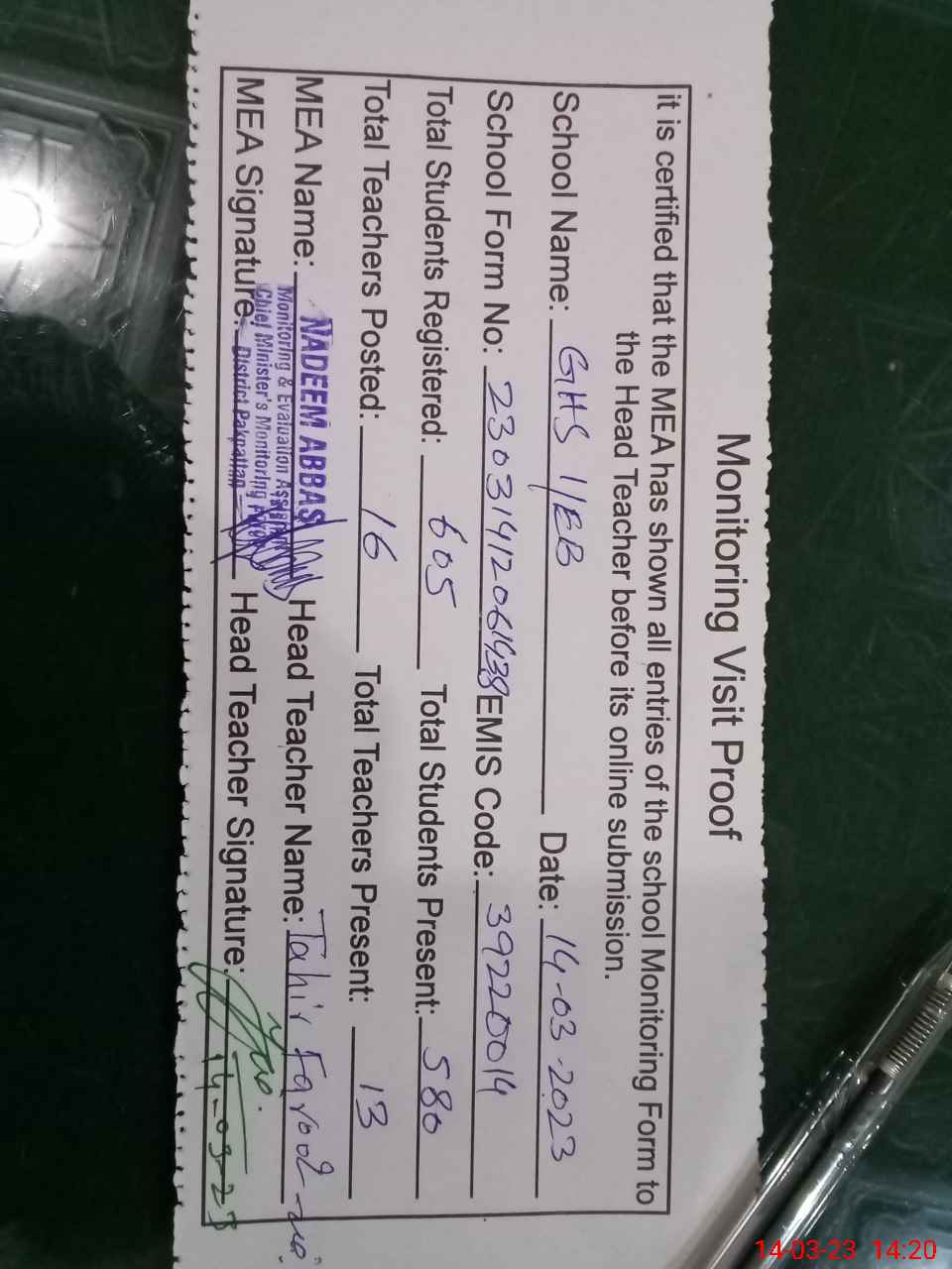 | EMIS Code: 39220013 | Name of School: GHS 1-EB | |||