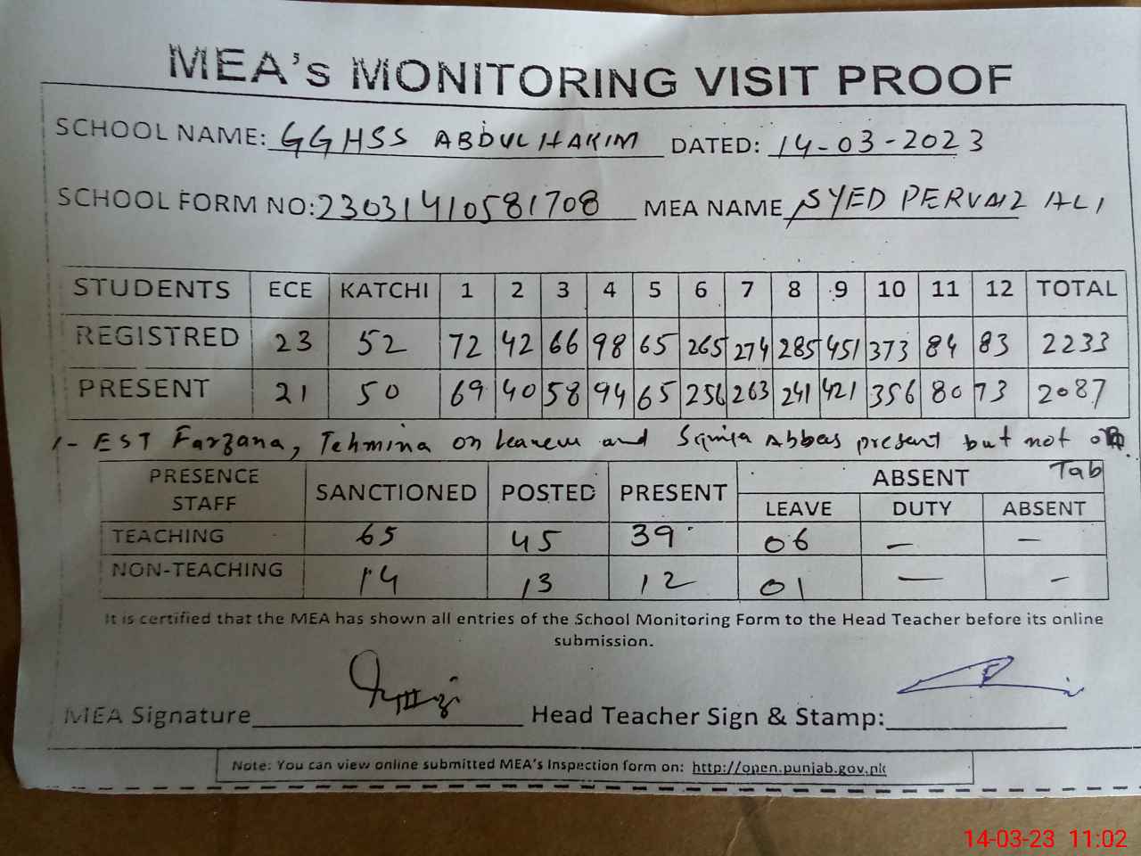 | EMIS Code: 36410002 | Name of School: GGHSS ABDUL HAKIM, ABDUL HAKIM | |||