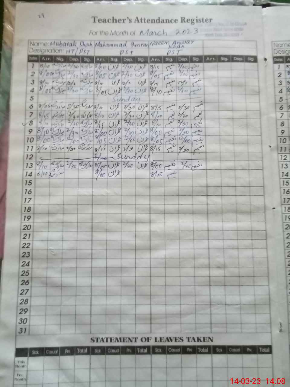 | Name: MU**** HU**** Designation: (School Headmaster's/Headmistress's) PST Phone/Cell Number: 03**** |