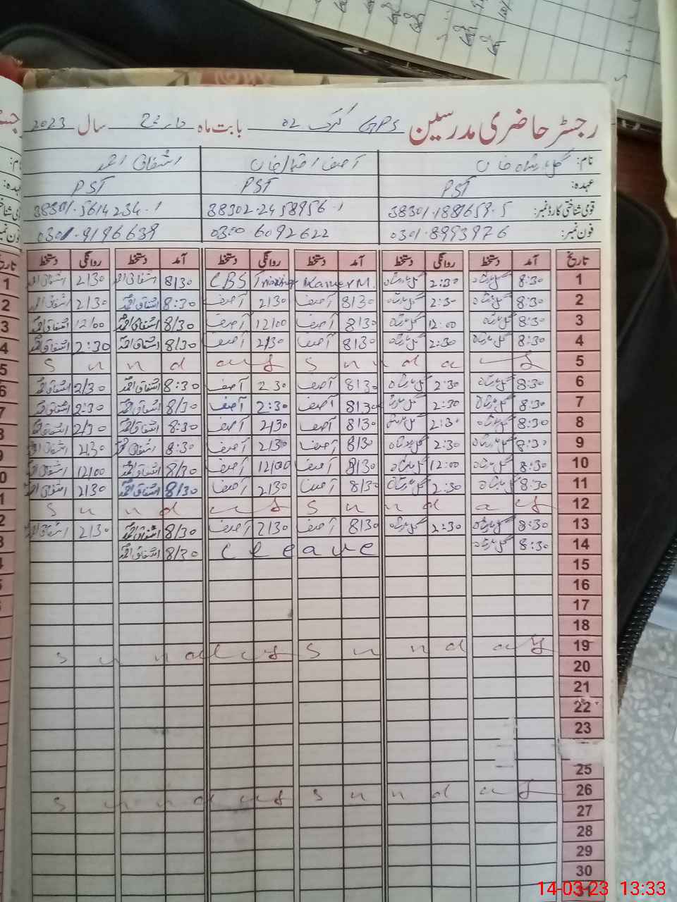 | Name: Gu**** Ba**** Kh**** Designation: (School Headmaster's/Headmistress's) PST Phone/Cell Number: 03**** |