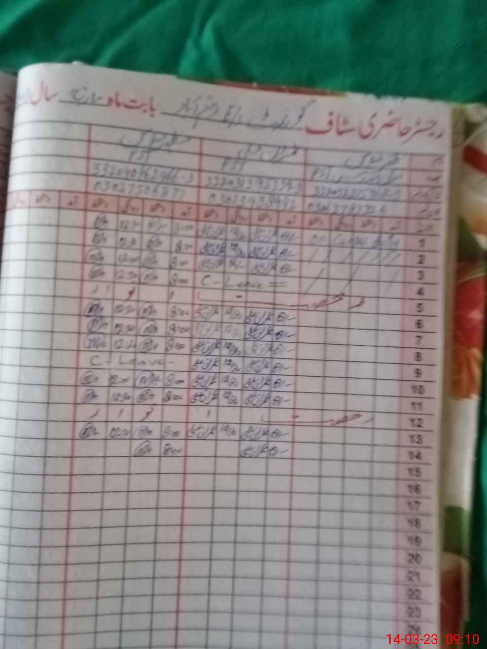 | CNIC | Full Name | Designation | R/C | Absence During Last Calender Month |