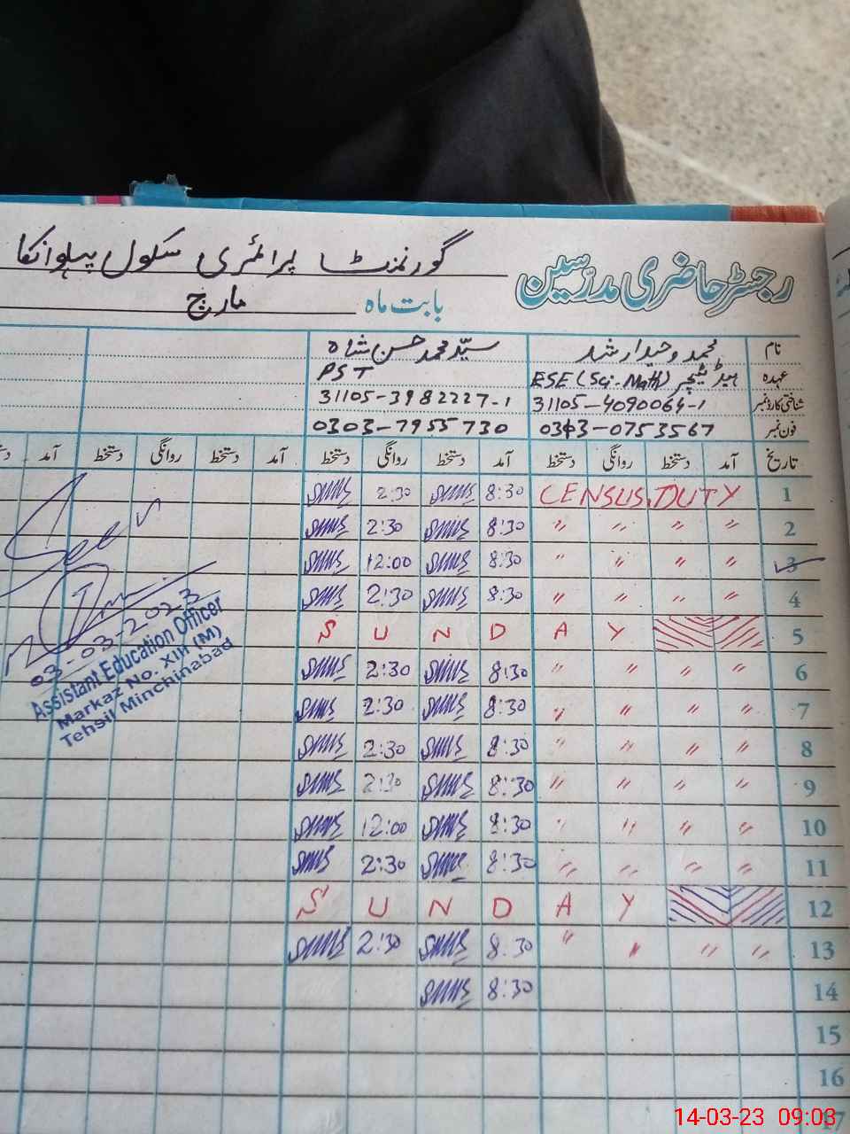| Name: MU**** WA**** AR**** Designation: (School Headmaster's/Headmistress's) ESE SC MATH Phone/Cell Number: 03**** |
