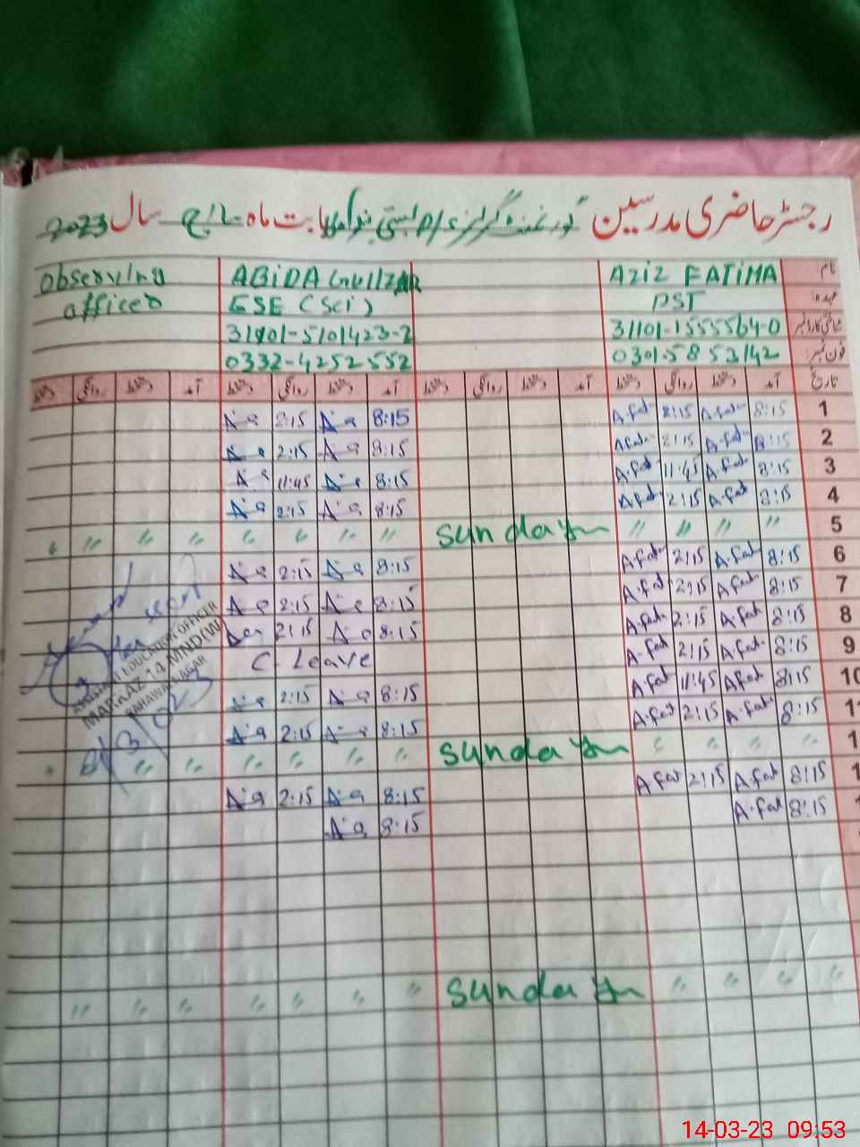 | Name: Su**** Aj**** Designation: (School Headmaster's/Headmistress's) PST Phone/Cell Number: 03**** |