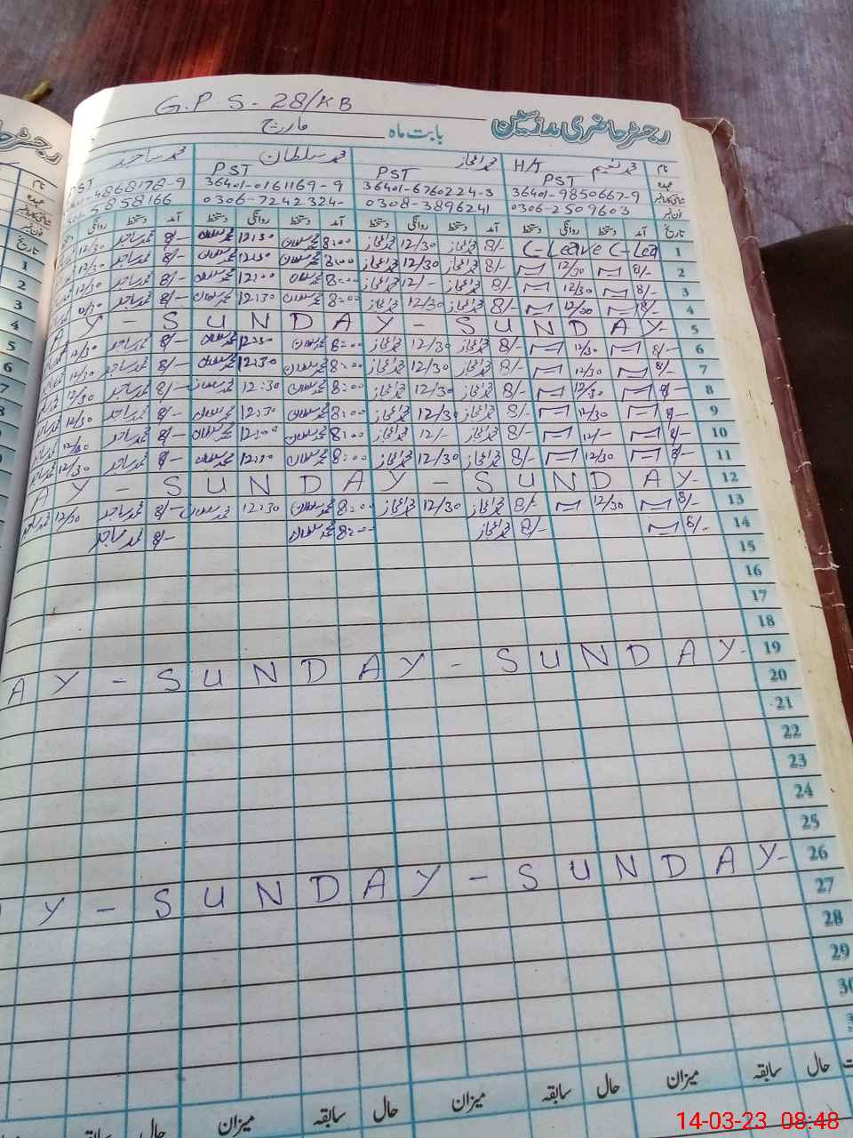 | CNIC | Full Name | Designation | R/C | Absence During Last Calender Month |