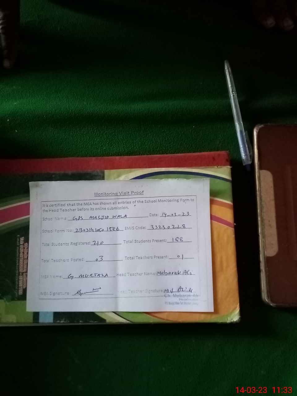 | EMIS Code: 33230228 | Name of School: GPS MASJID WALA | |||