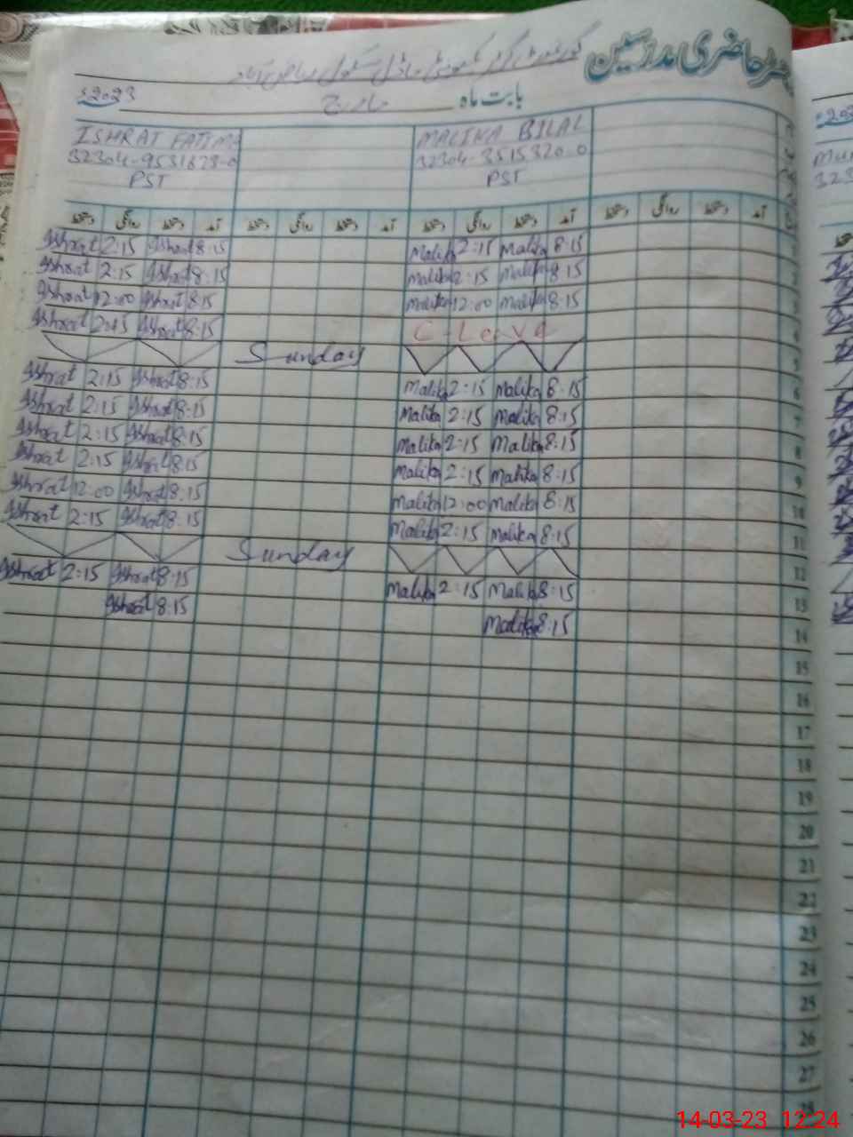 | CNIC | Full Name | Designation | R/C | Absence During Last Calender Month |