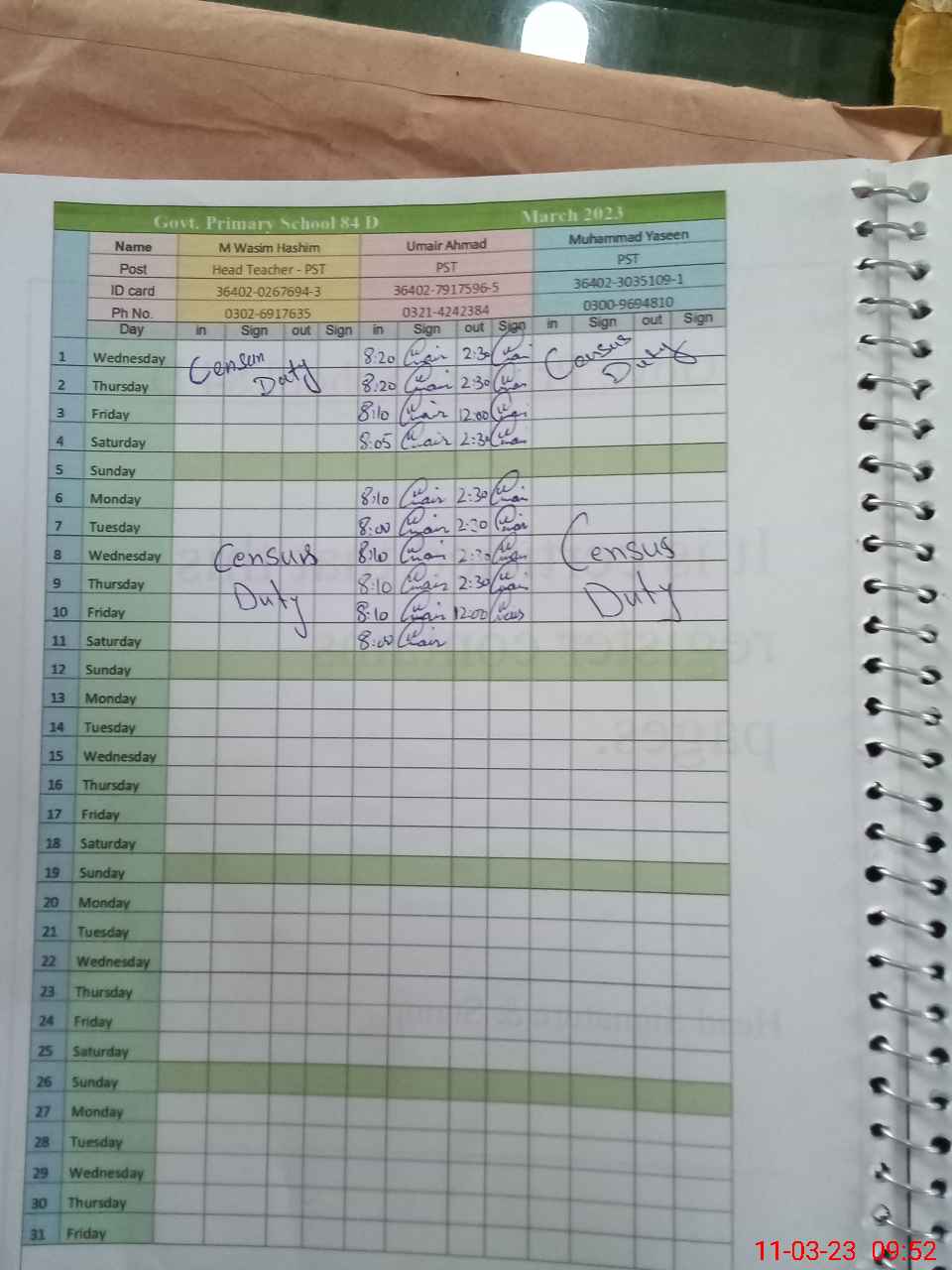 | Name: MU**** WA**** HA**** Designation: (School Headmaster's/Headmistress's) PST Phone/Cell Number: 03**** |