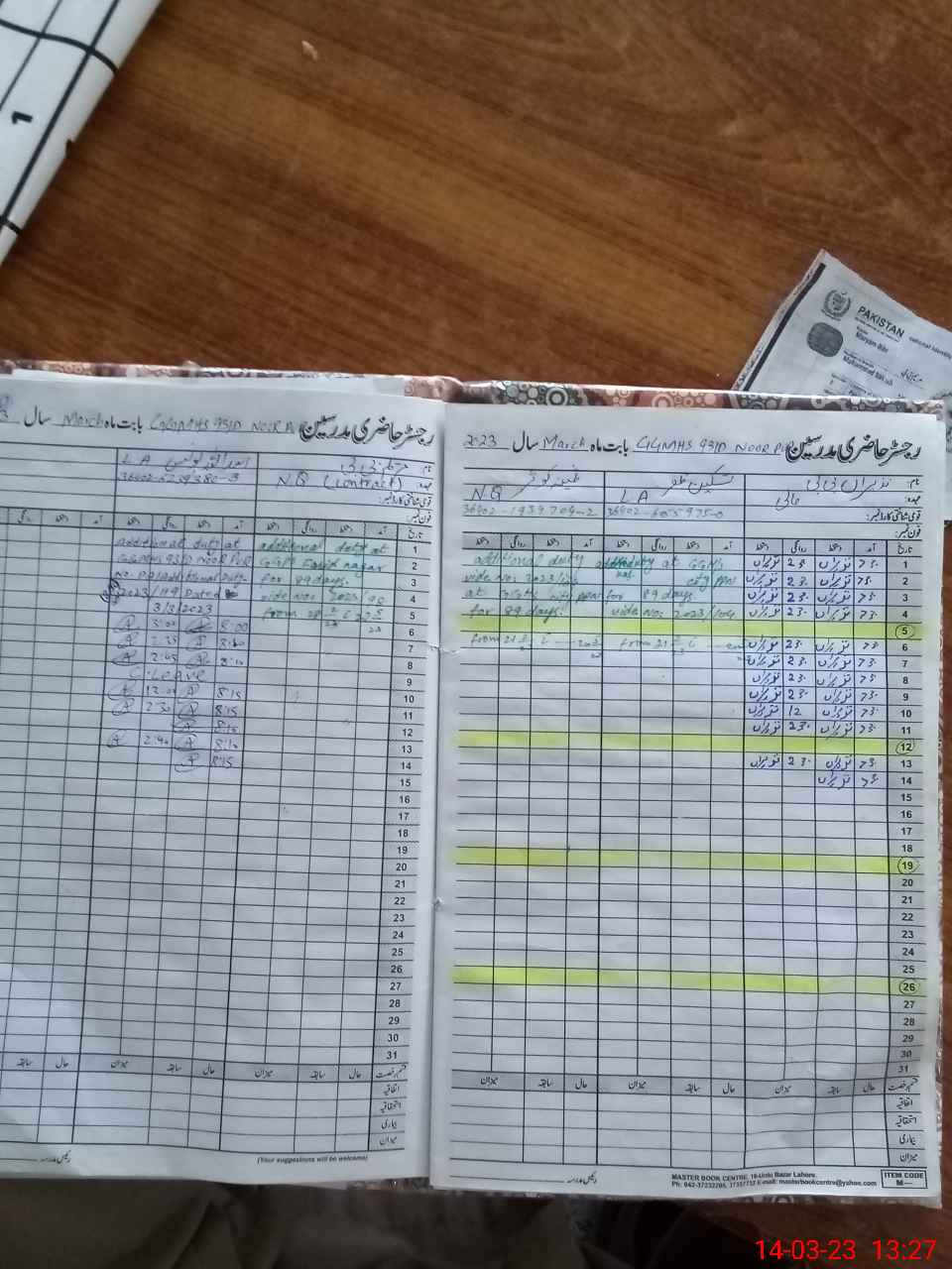 | CNIC | Full Name | Designation | R/C | Absence During Last Calender Month |
