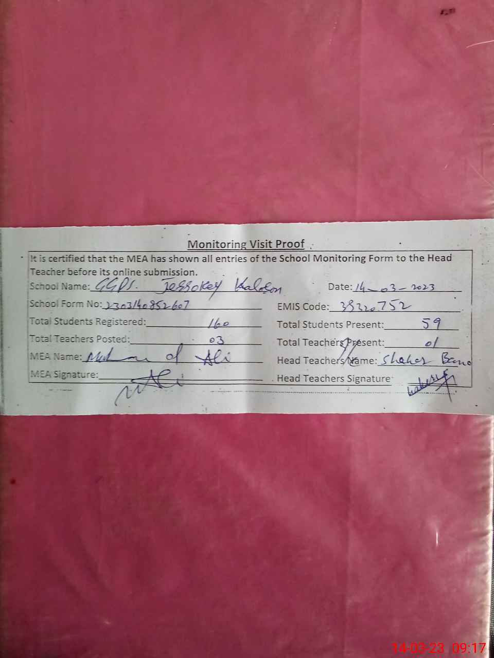 | EMIS Code: 39320752 | Name of School: GGPS CHAK JASSOKEY KALASON | |||