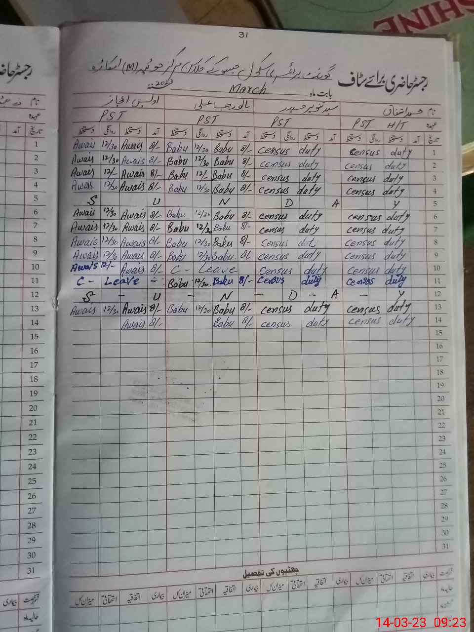 | CNIC | Full Name | Designation | R/C | Absence During Last Calender Month |