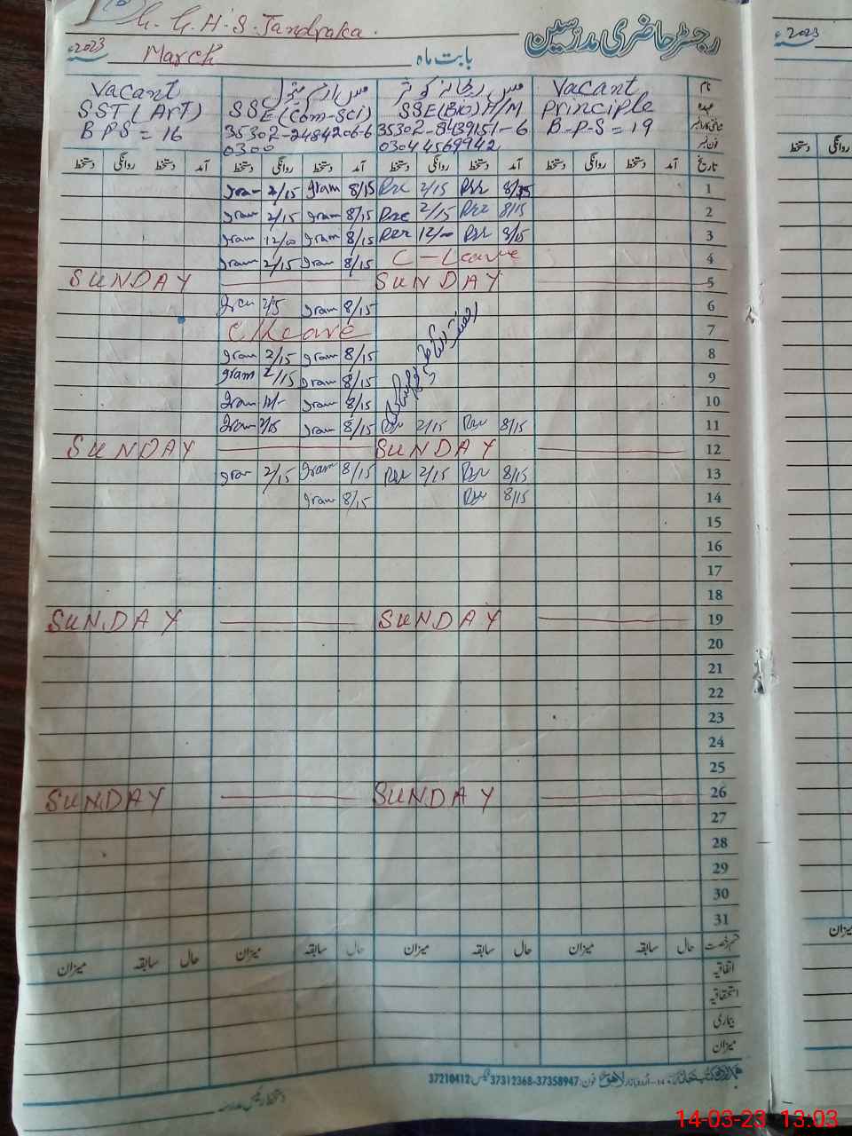 | Remarks (Use Separate Page if Required): PST Misbaulhaq is present in the school but no intry in the teachers colum | |||||