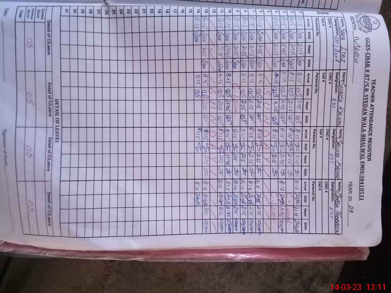 | Name: SA**** IJ**** Designation: (School Headmaster's/Headmistress's) HM Phone/Cell Number: 03**** |