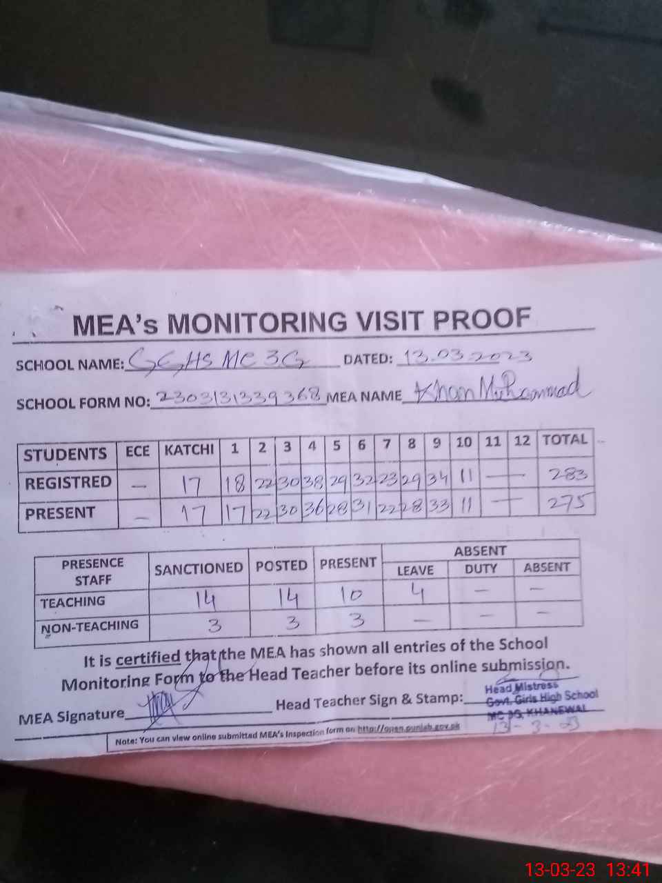 | EMIS Code: 36420365 | Name of School: GGHS MC 3-G, KHANEWAL | |||