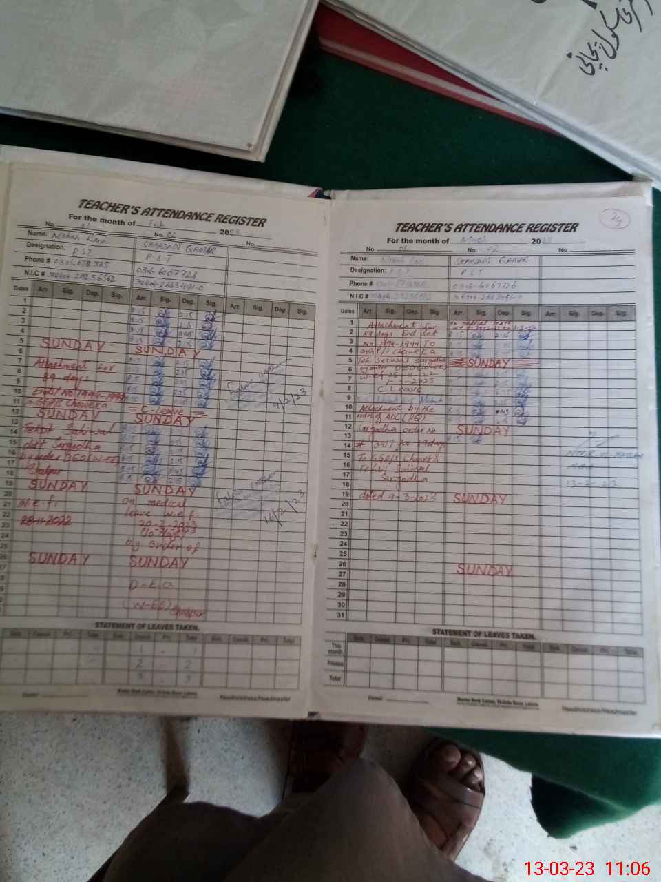 | Name: SH**** QA**** Designation: (School Headmaster's/Headmistress's) PST Phone/Cell Number: 03**** |
