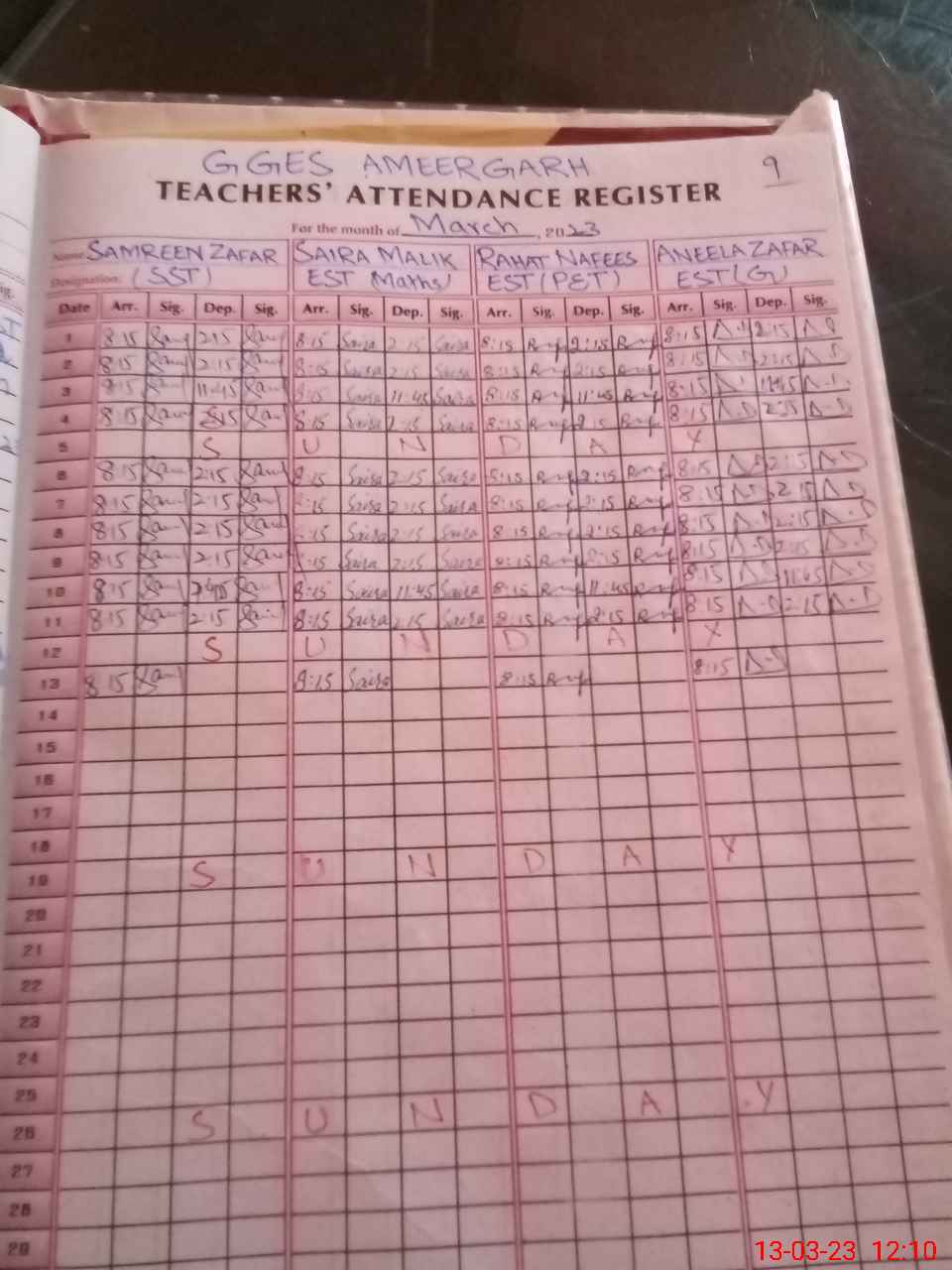 | Name: SA**** ZA**** Designation: (School Headmaster's/Headmistress's) S.S.T(ARTS) Phone/Cell Number: 03**** |