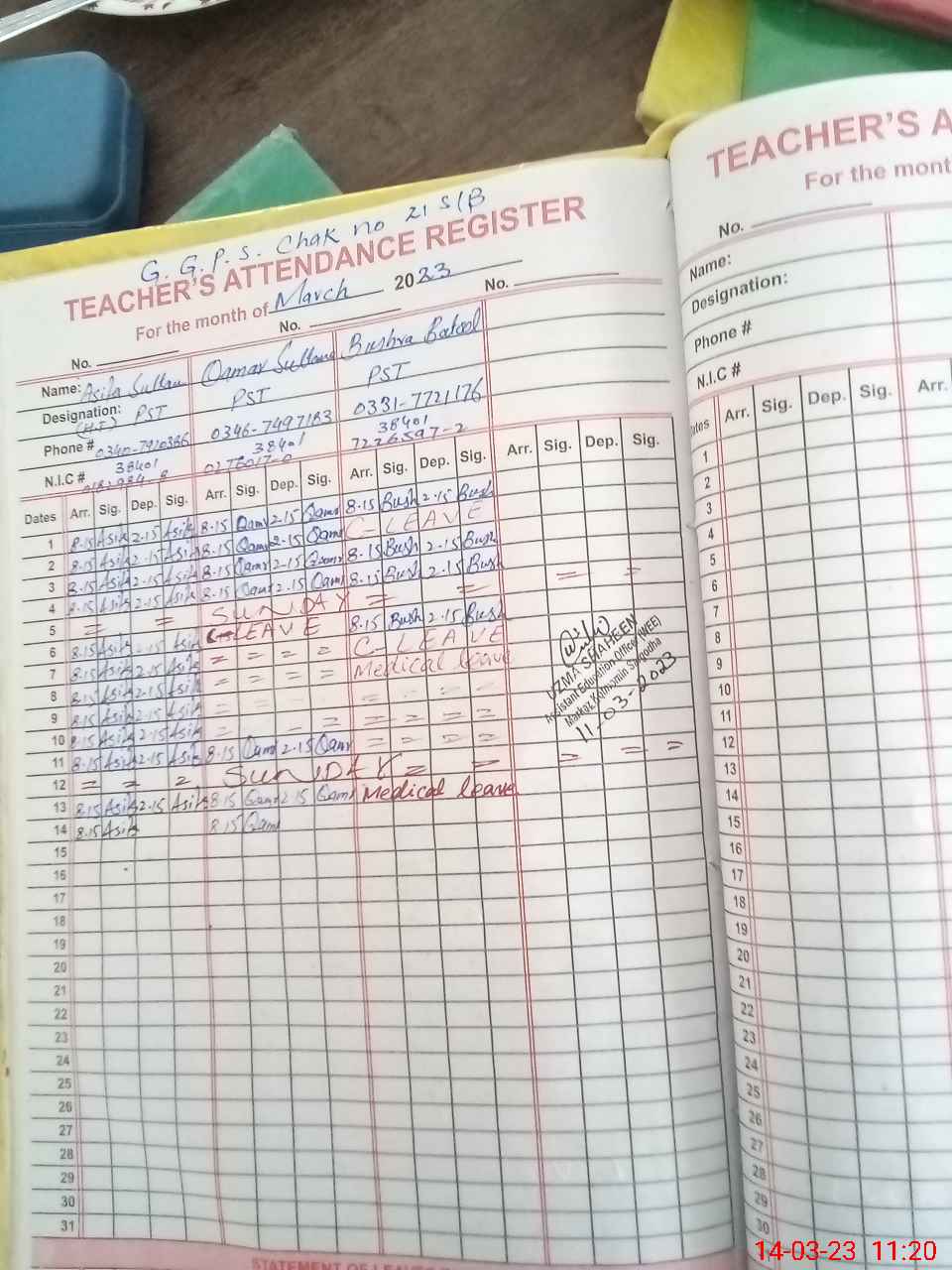 | Name: AS**** SU**** Designation: (School Headmaster's/Headmistress's) PST Phone/Cell Number: 03**** |