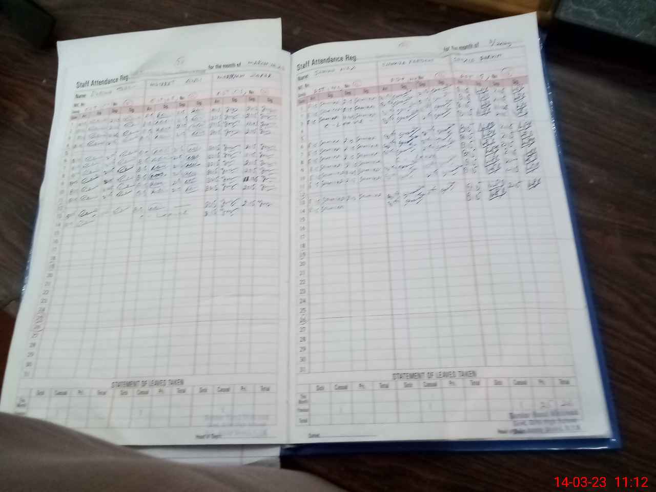 | CNIC | Full Name | Designation | R/C | Absence During Last Calender Month |