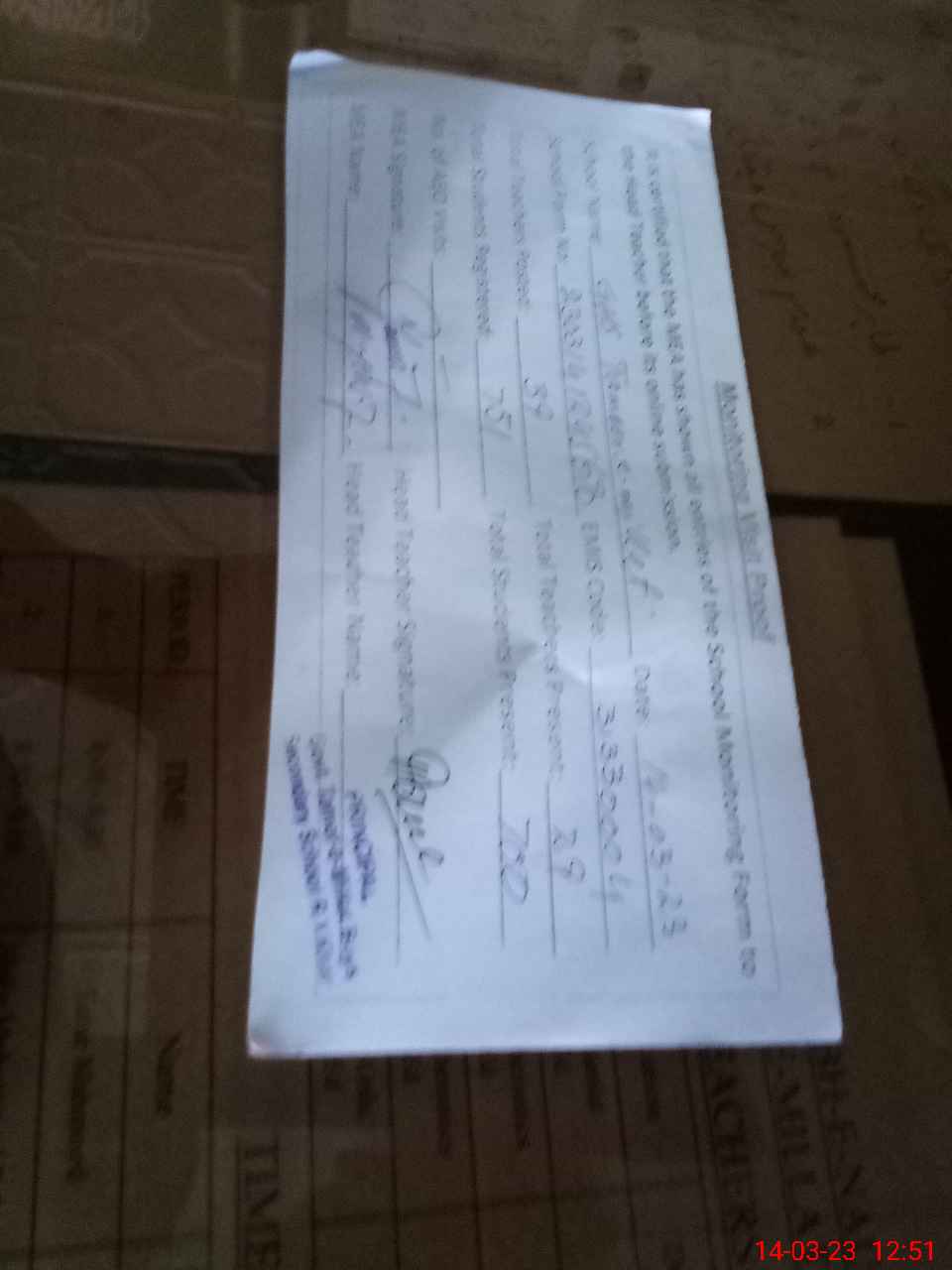 | Attendance Register | Head Teacher | MEA with School | Visit Proof |