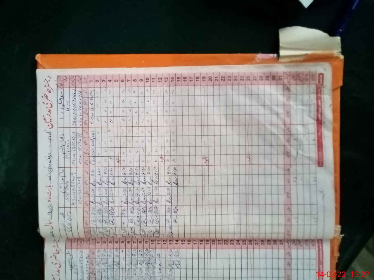 | CNIC | Full Name | Designation | R/C | Absence During Last Calender Month |