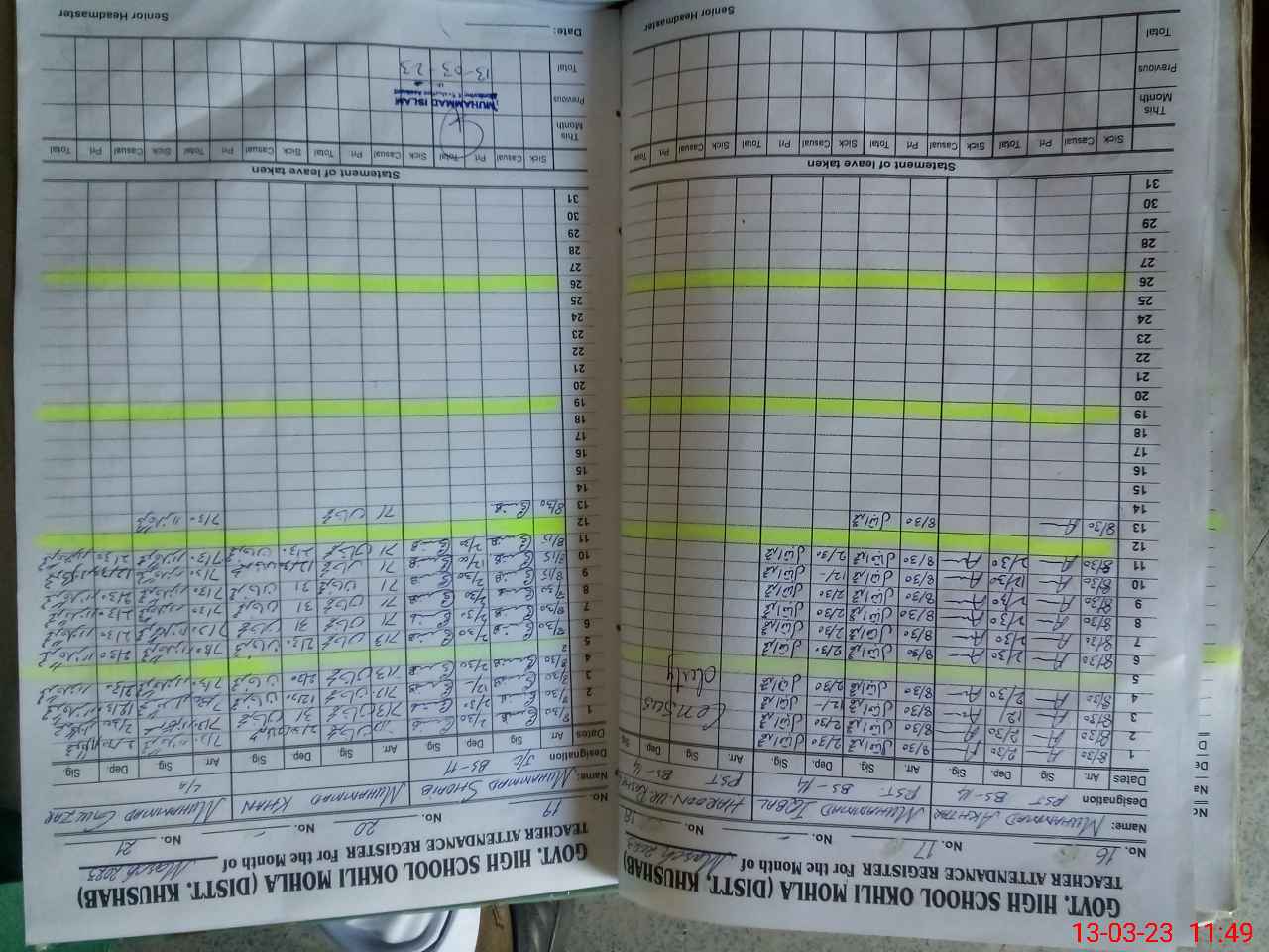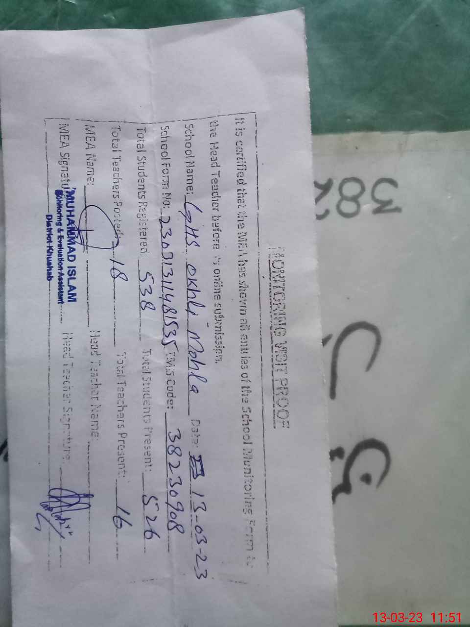 | Name: Mu**** Mu**** Designation: (School Headmaster's/Headmistress's) H M Phone/Cell Number: 03**** |