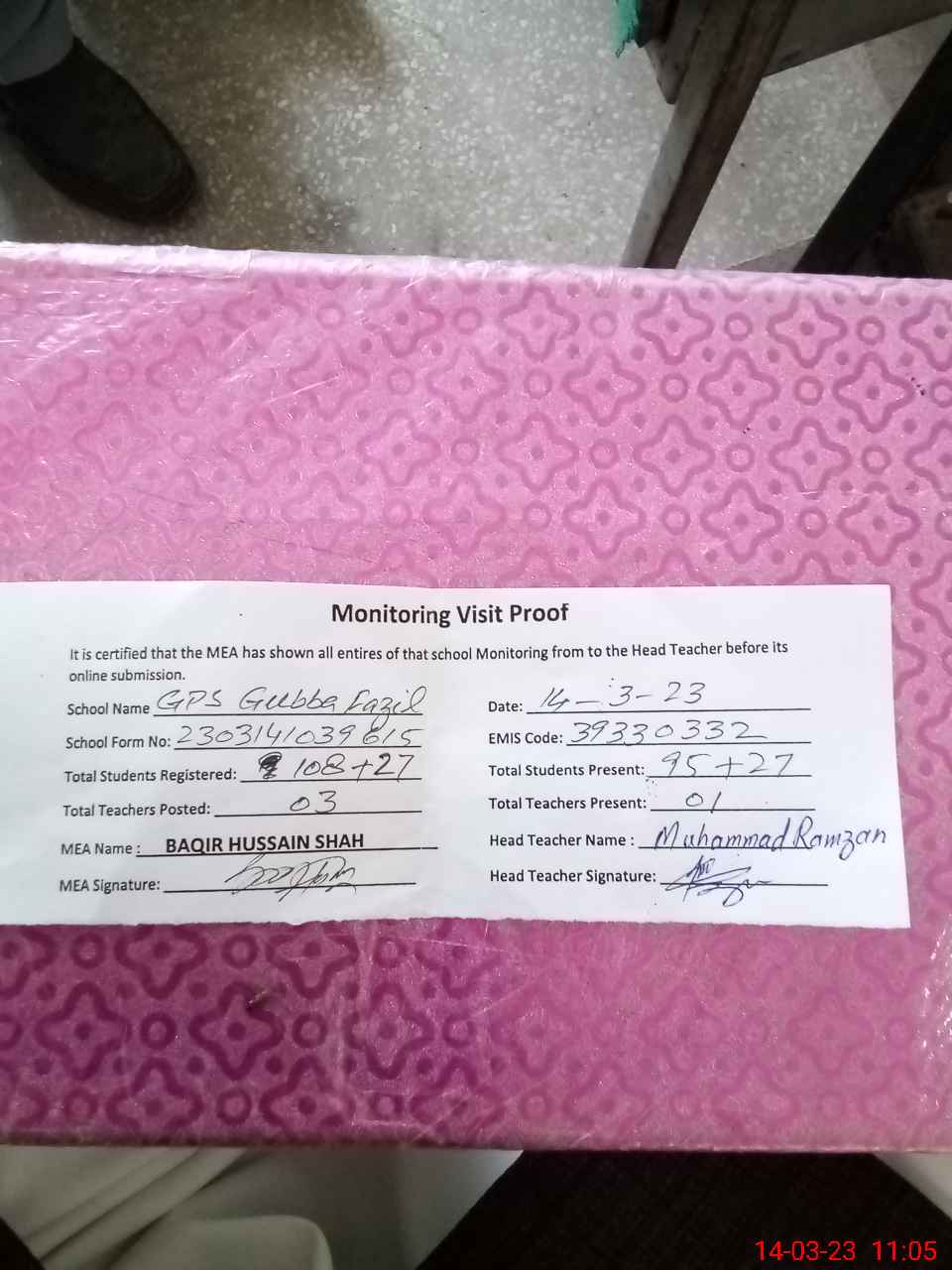 | EMIS Code: 39330332 | Name of School: GPS GUBBA FAZIL | |||