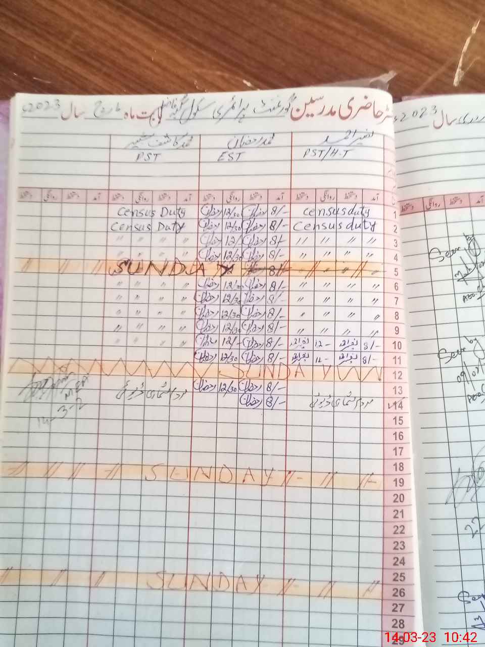 | CNIC | Full Name | Designation | R/C | Absence During Last Calender Month |