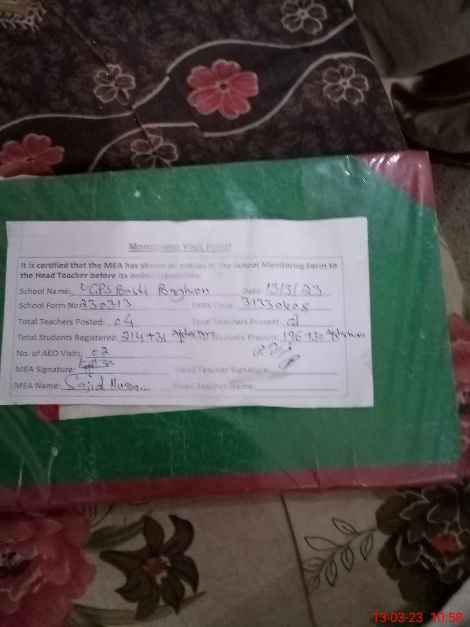 | EMIS Code: 31330408 | Name of School: GPS BAGHOON | |||