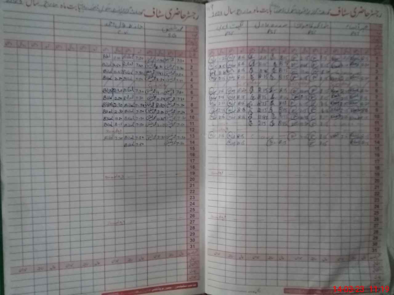 | CNIC | Full Name | Designation | R/C | Absence During Last Calender Month |