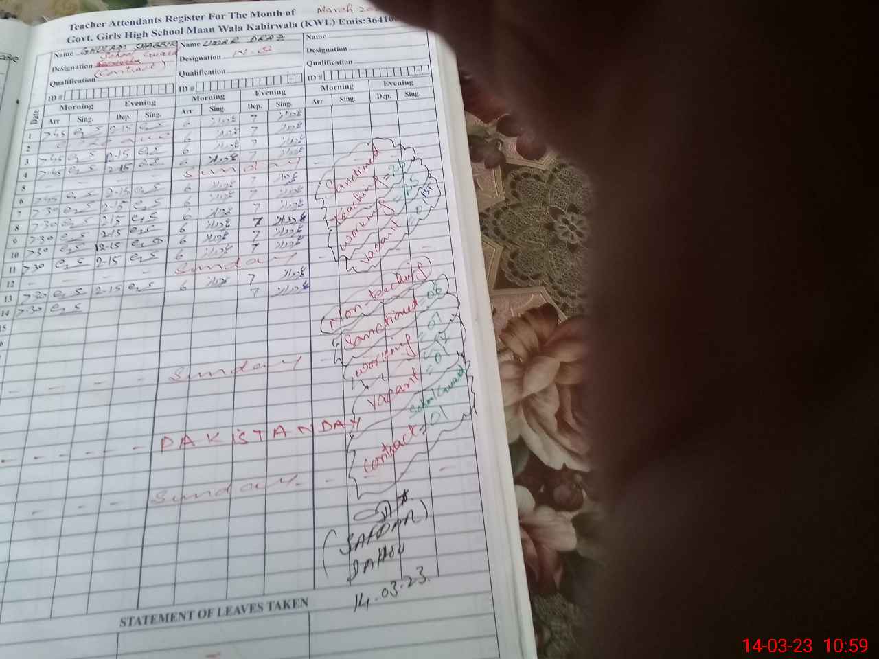 | Name: Fo**** Sa**** Designation: (School Headmaster's/Headmistress's) Sr Head Mistress Phone/Cell Number: 03**** |
