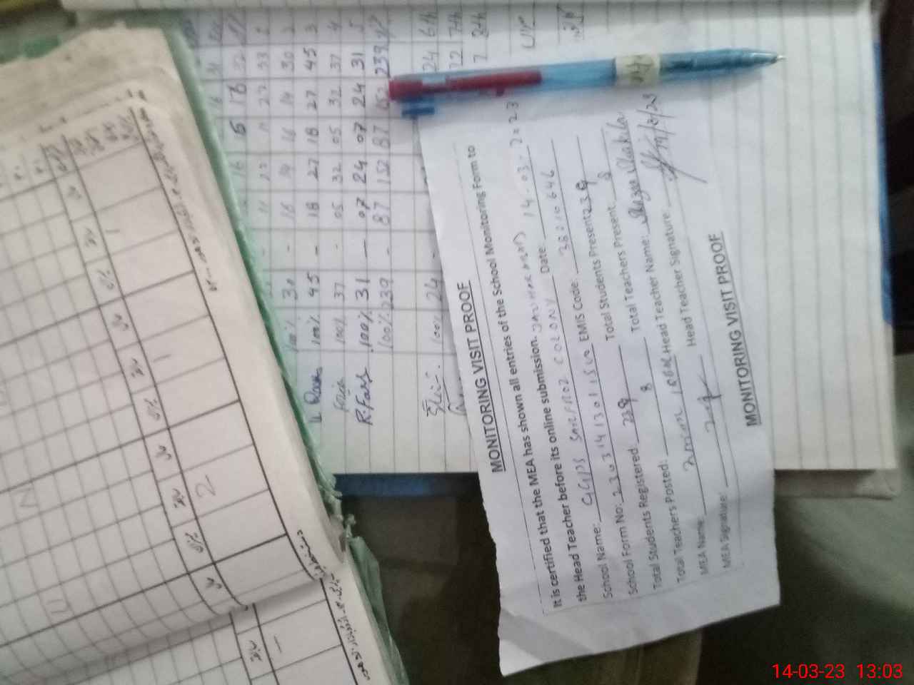 | Attendance Register | Head Teacher | MEA with School | Visit Proof |