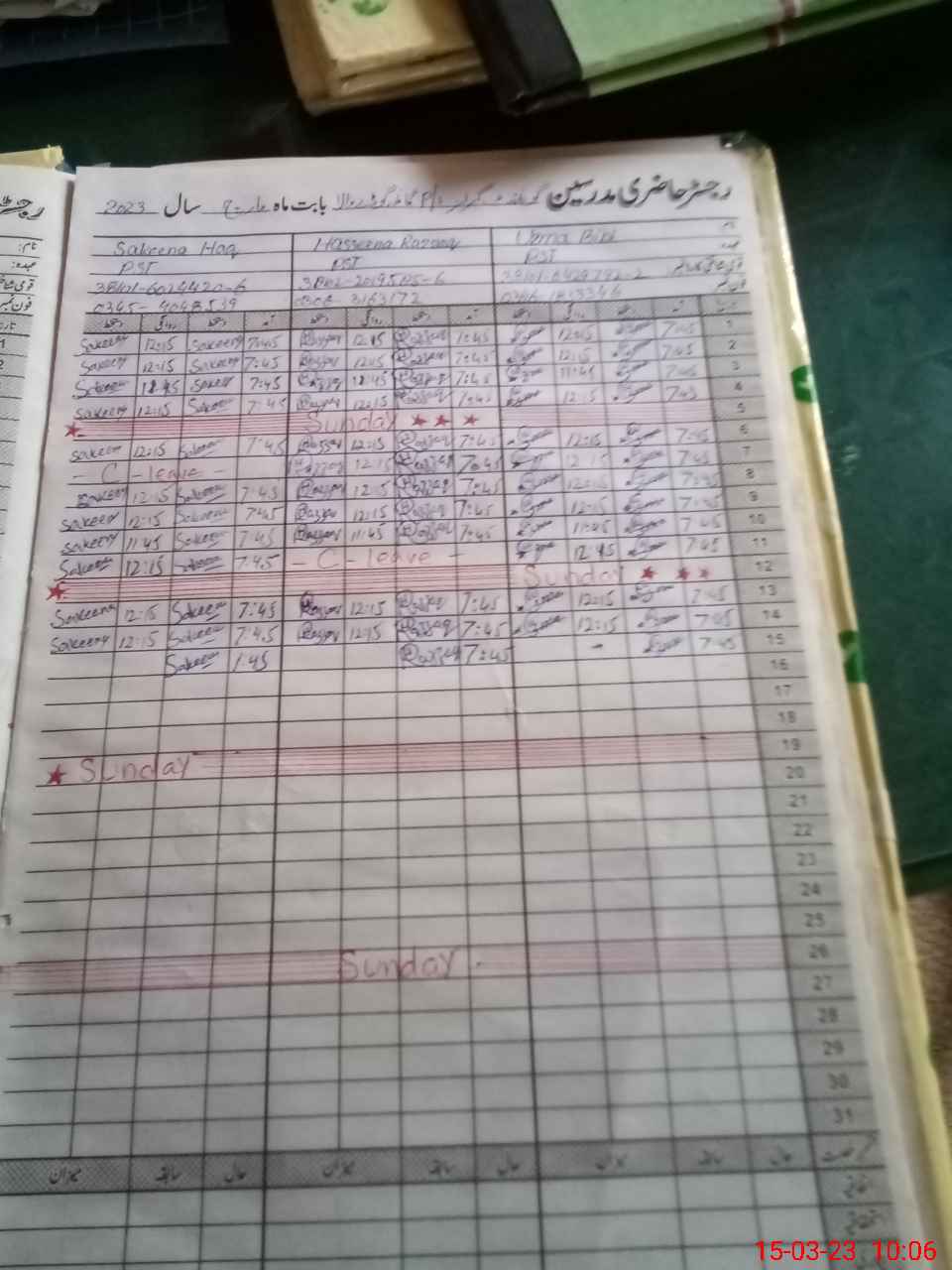 | Name: Uz**** Bi**** Designation: (School Headmaster's/Headmistress's) PST Phone/Cell Number: 03**** |