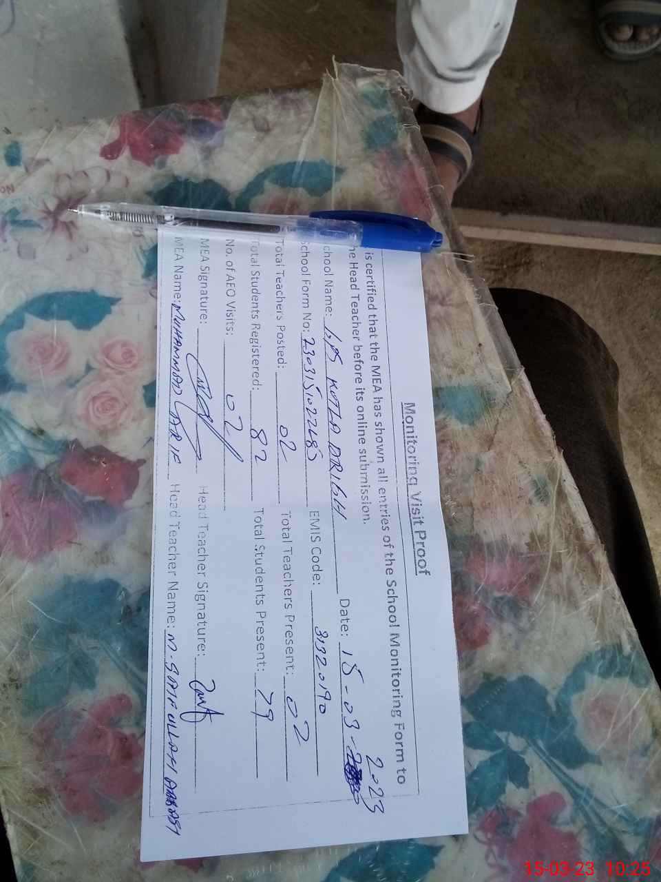 | Attendance Register | Head Teacher | MEA with School | Visit Proof |