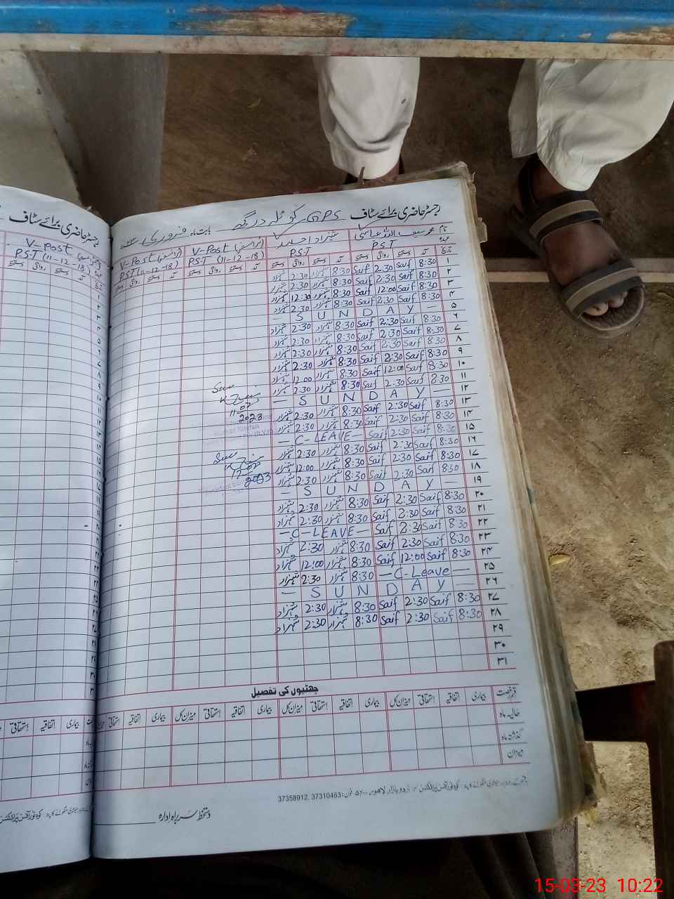 | CNIC | Full Name | Designation | R/C | Absence During Last Calender Month |