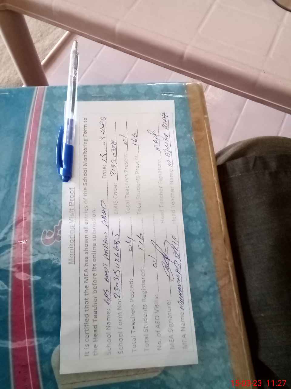 | Attendance Register | Head Teacher | MEA with School | Visit Proof |