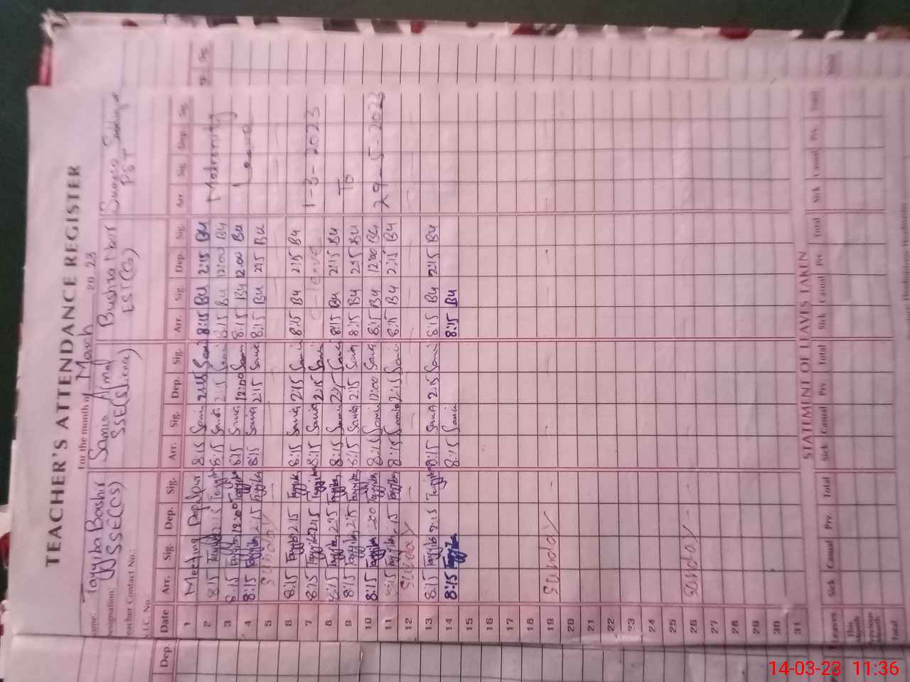 | Name: TA**** BA**** Designation: (School Headmaster's/Headmistress's) SST SCI Phone/Cell Number: 03**** |