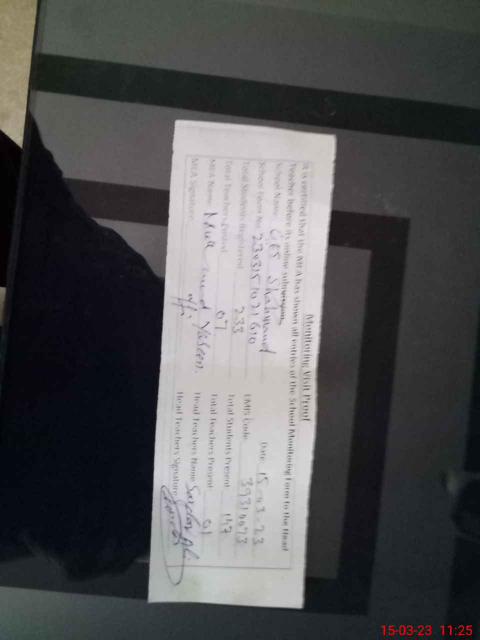 | Attendance Register | Head Teacher | MEA with School | Visit Proof |