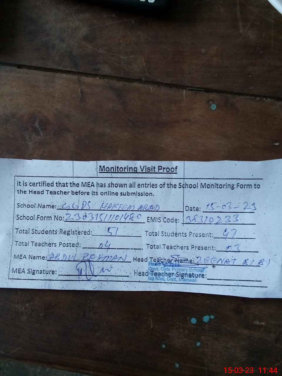 | EMIS Code: 38310233 | Name of School: GGPS HAKEEM ABAD | |||