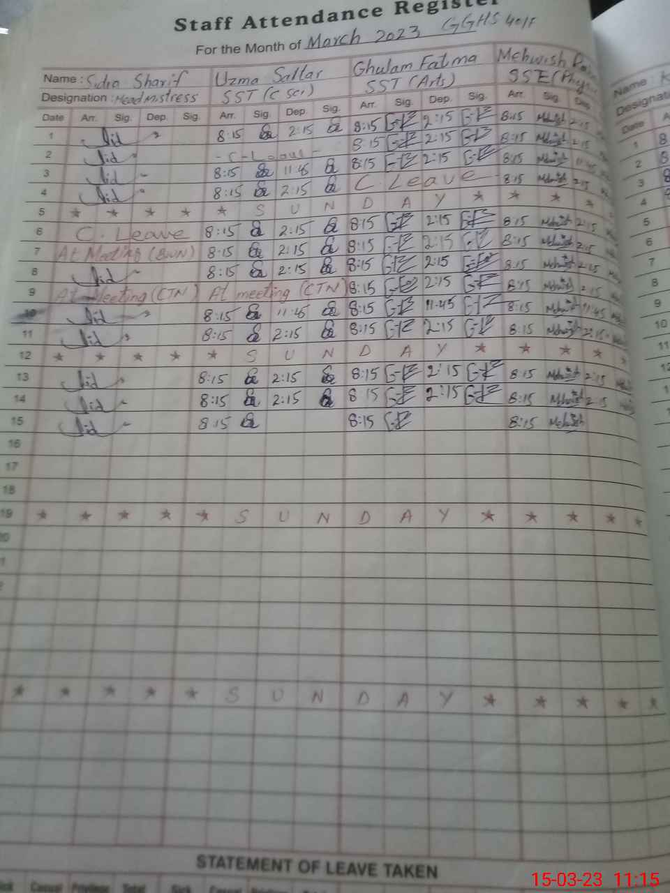 | Monitoring Date: 15-03-2023 | Start Time: 15-03-2023 11:11 AM | End Time: 15-03-2023 12:08 PM | Name of MEA: MU**** SI**** BN**** | |