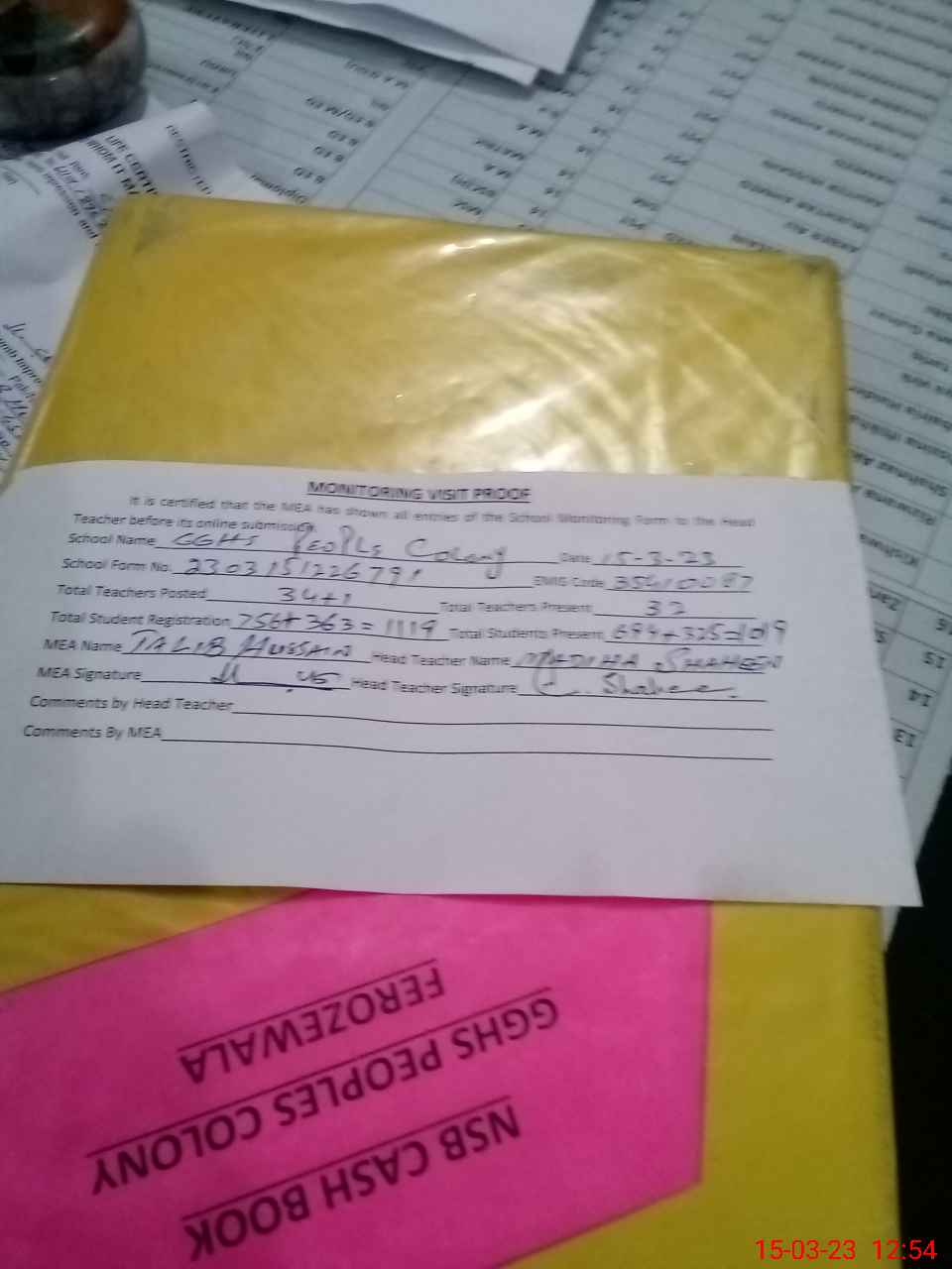 | Attendance Register | Head Teacher | MEA with School | Visit Proof |