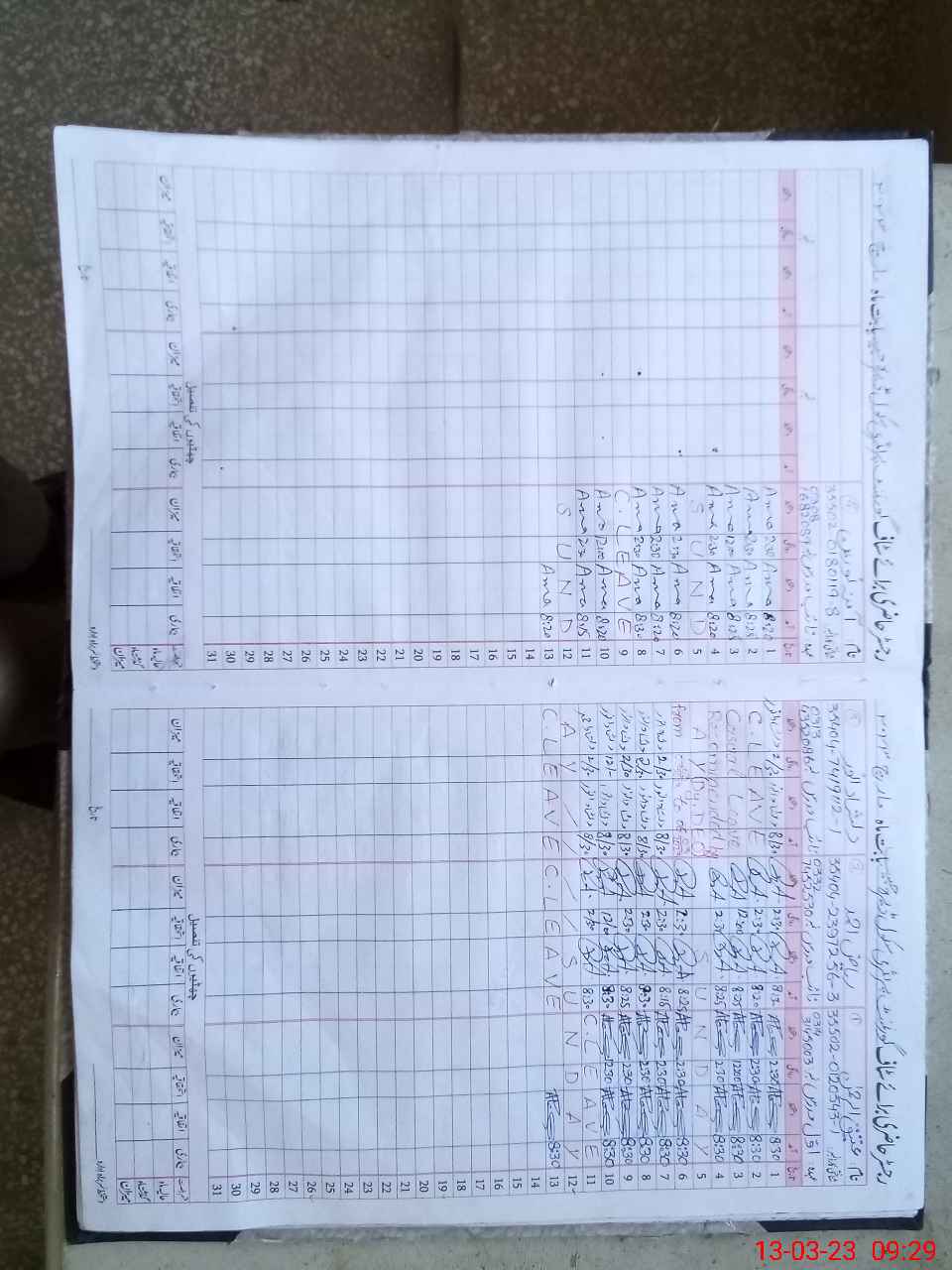 | CNIC | Full Name | Designation | R/C | Absence During Last Calender Month |