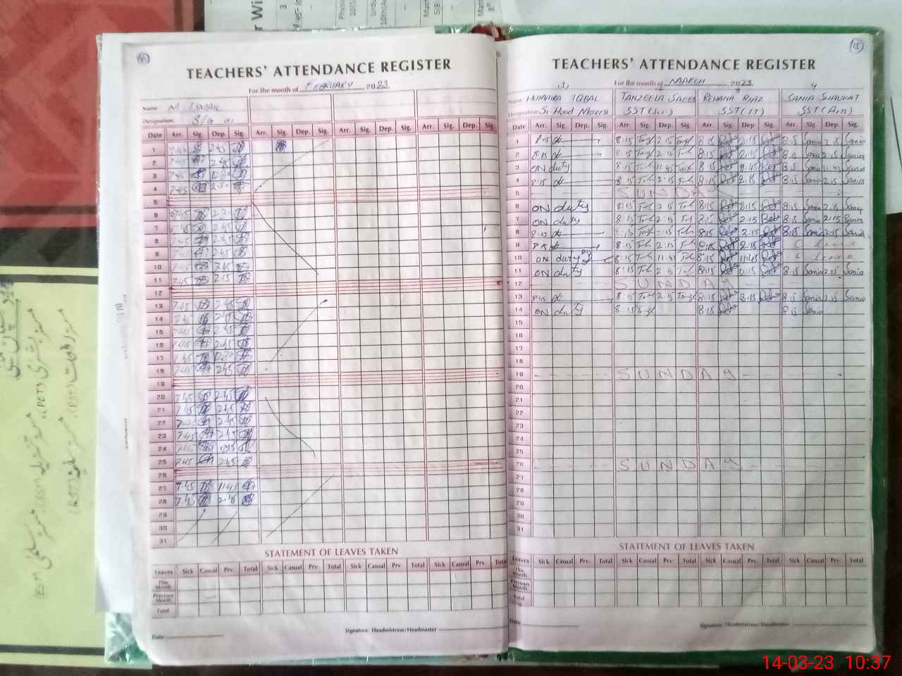 | Leave | Duty | Absent | Maternity | Medical | Ex- Pak |