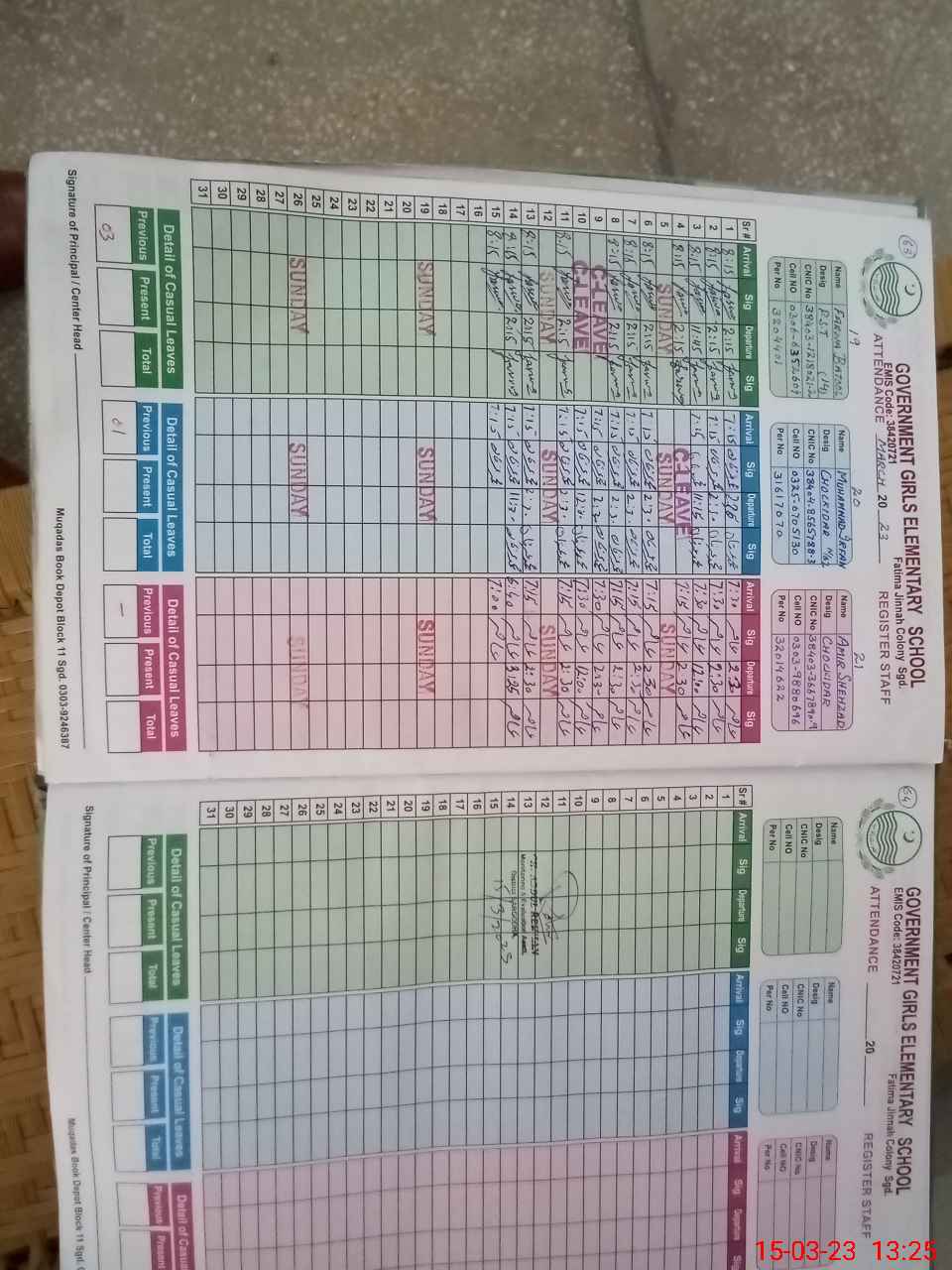 | CNIC | Full Name | Designation | R/C | Absence During Last Calender Month |