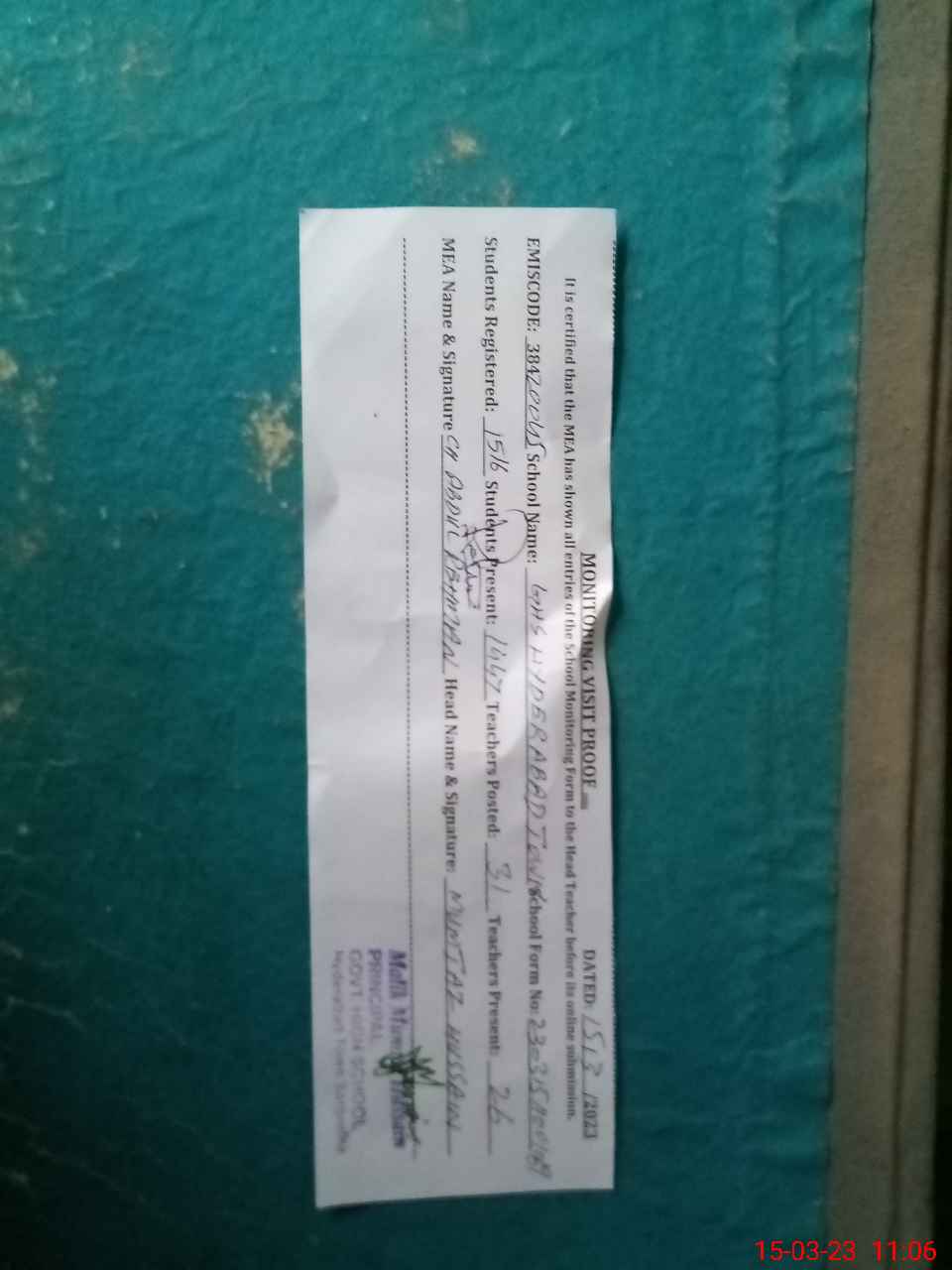 | Attendance Register | Head Teacher | MEA with School | Visit Proof |