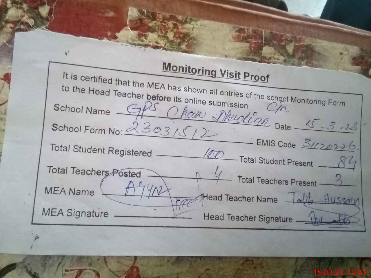 | EMIS Code: 31120226 | Name of School: GPS CHAK DHUDIAN | |||