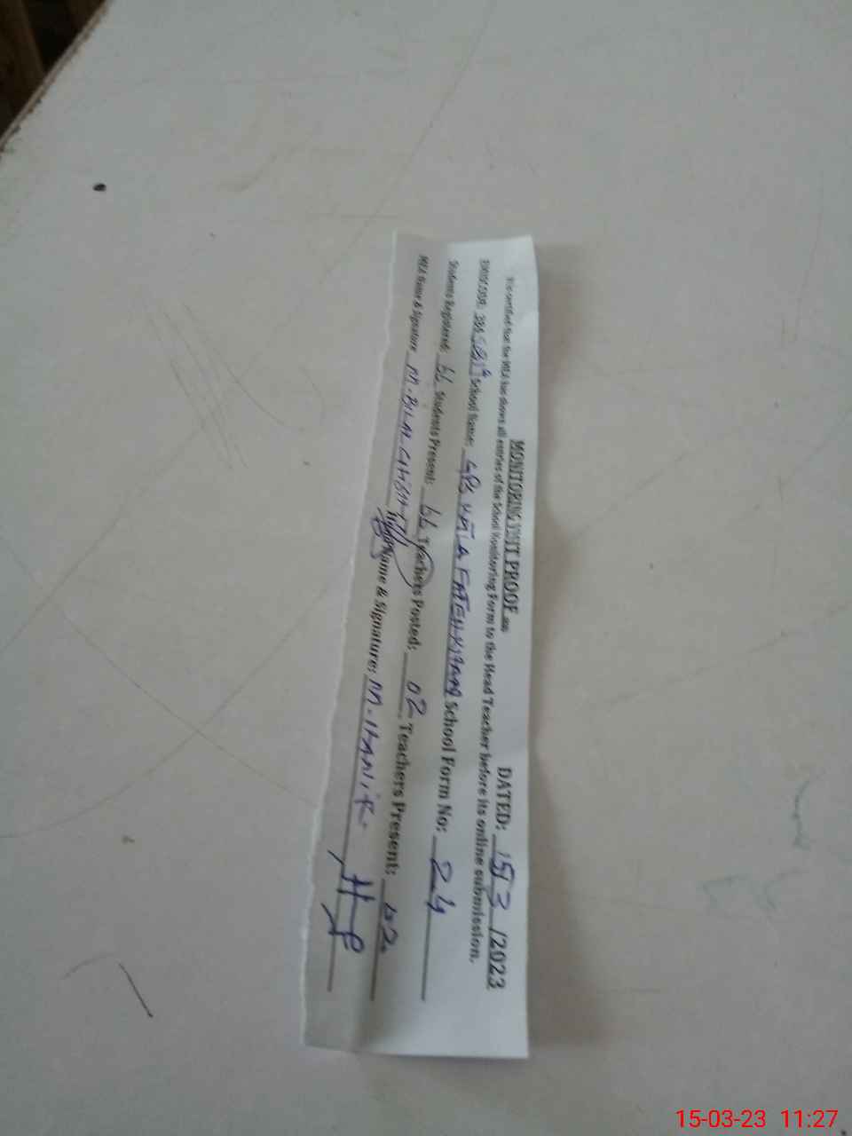 | Attendance Register | Head Teacher | MEA with School | Visit Proof |